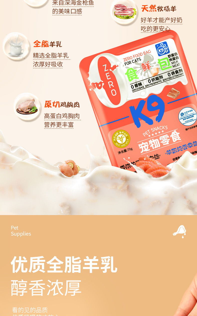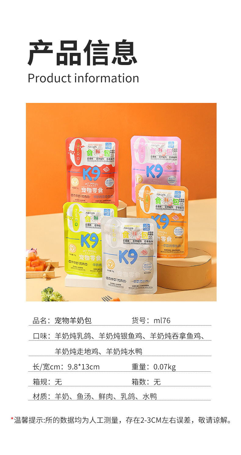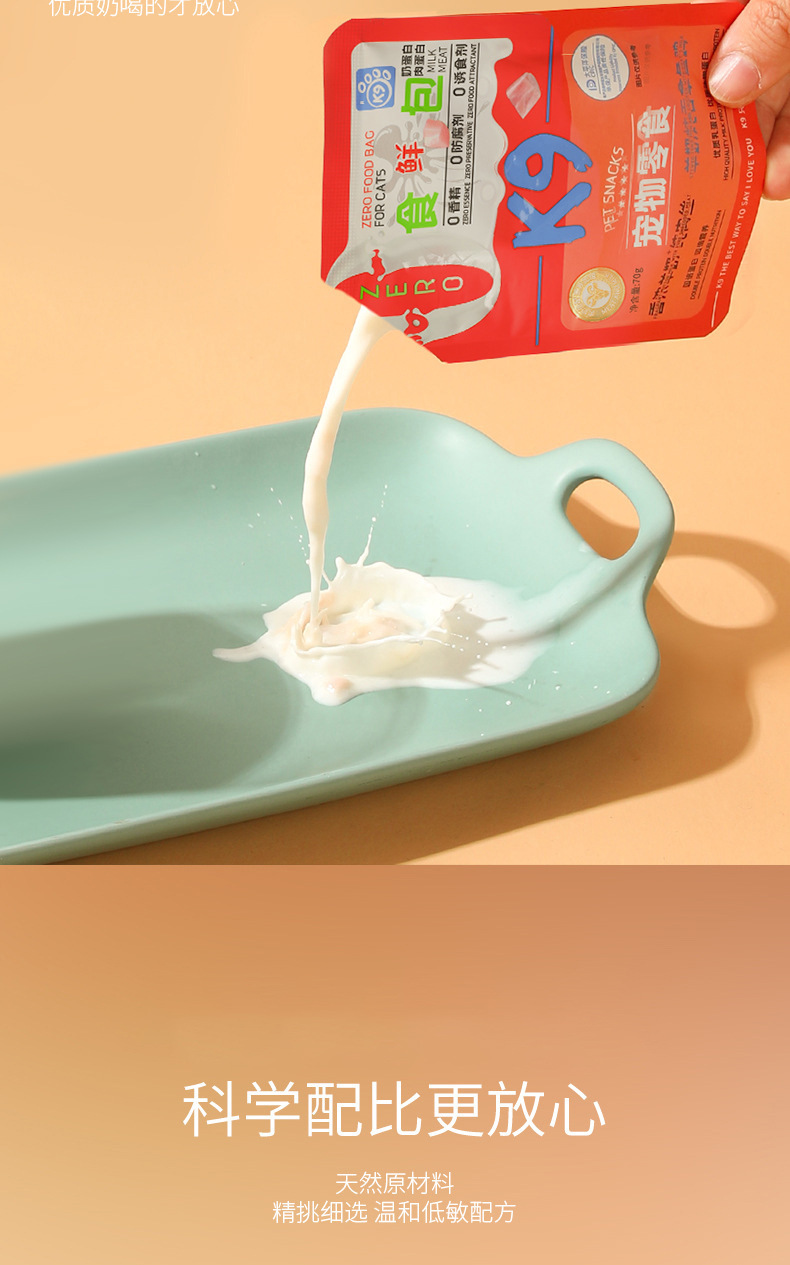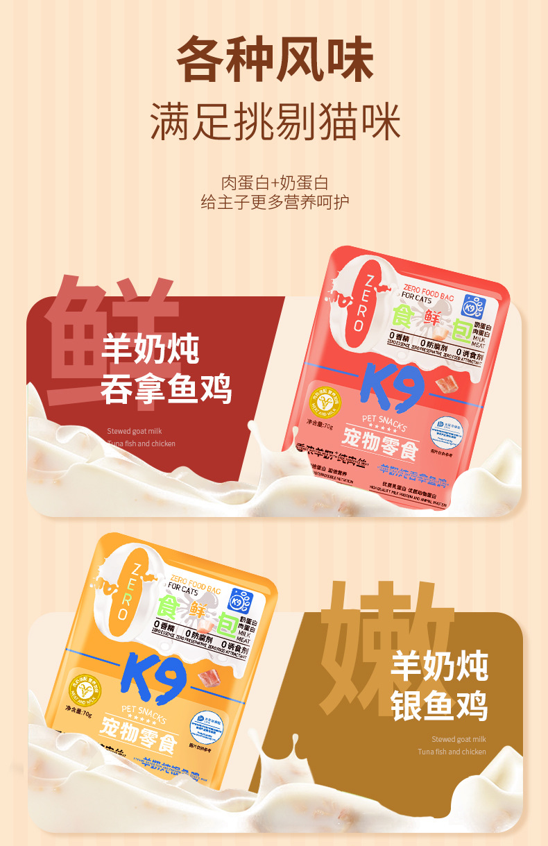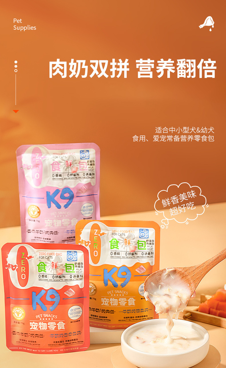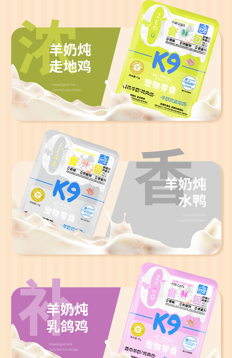 K9 gato mascota alimento húmedo bolsa de leche de cabra paloma guisada nutrición con leche de cabra entera perro gato mascota bocadillos al por mayor