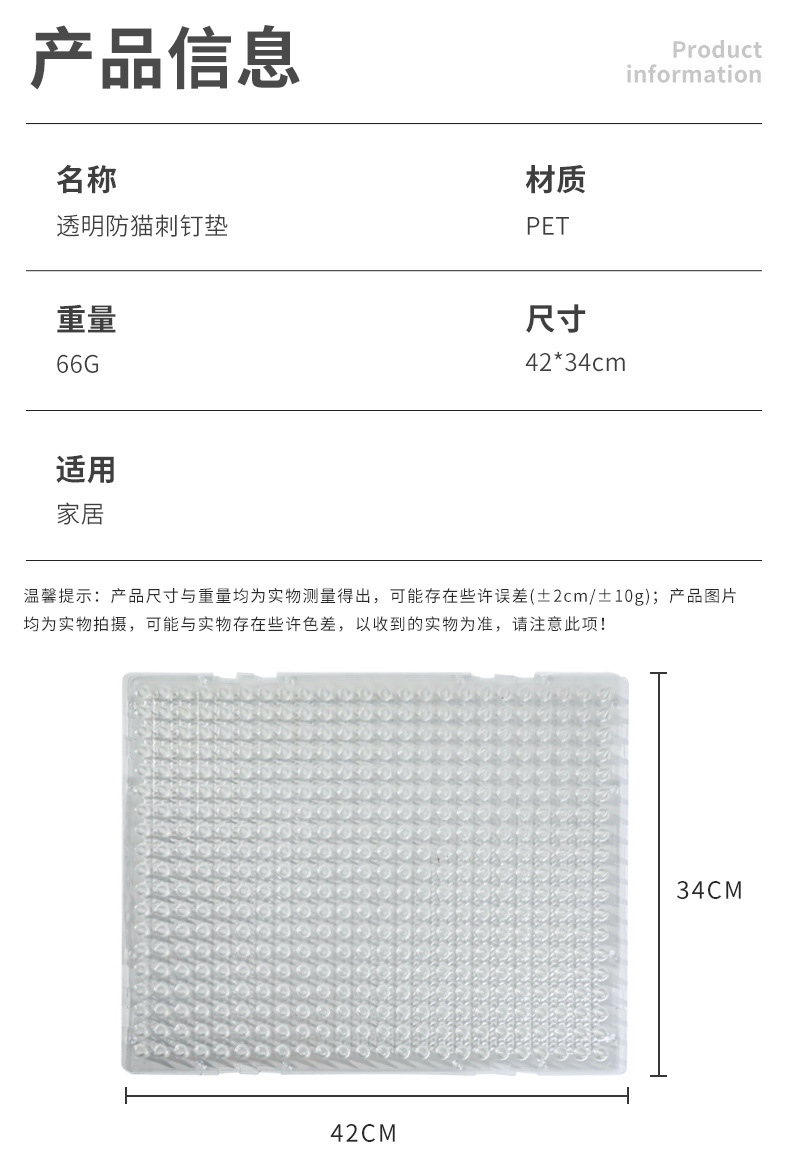 | Especificaciones | Almohadilla transparente resistente a las espinas de gato 42cm |
