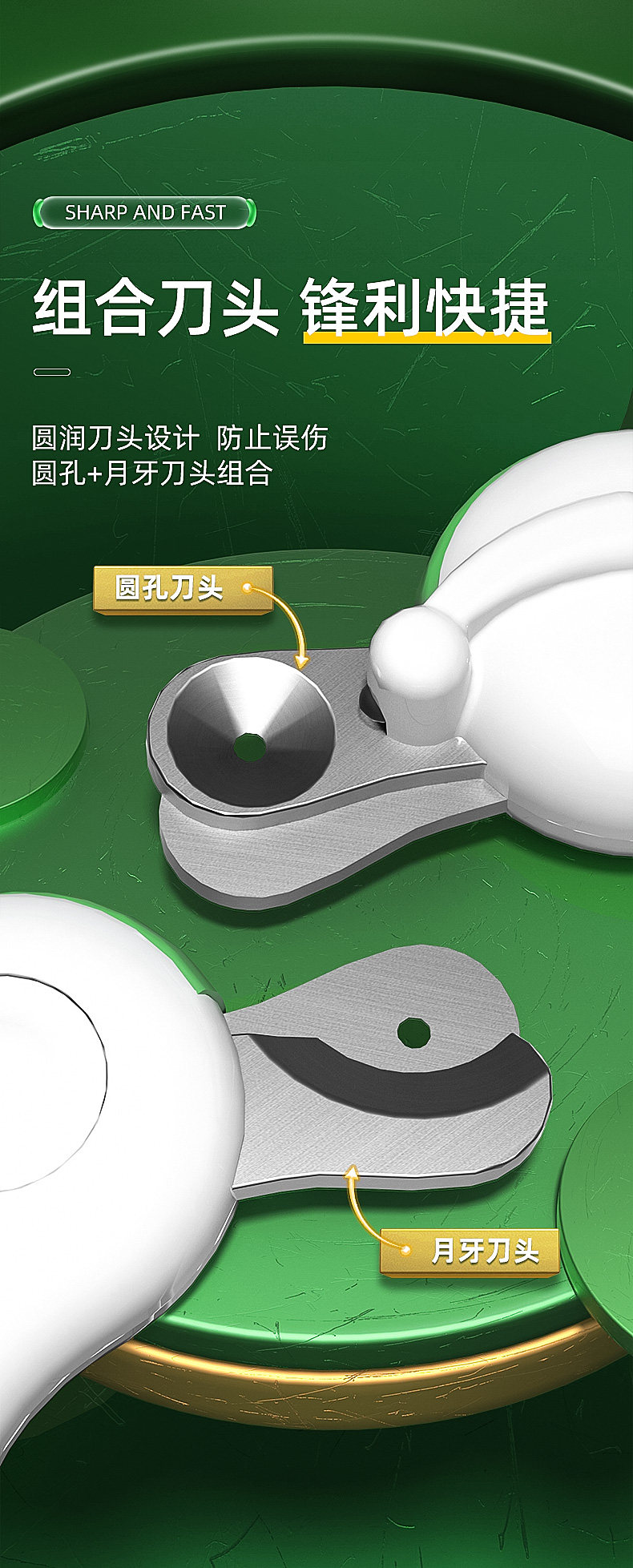 Doble seguro-LED redondo agujero tijeras (blanco y verde),Doble seguro-LED redondo agujero tijeras (blanco y gris),Cabeza de corte de media luna-Tijeras de apertura LED (blanco y verde),Cabezal de corte de media luna-Tijeras de apertura LED (blanco y gris)