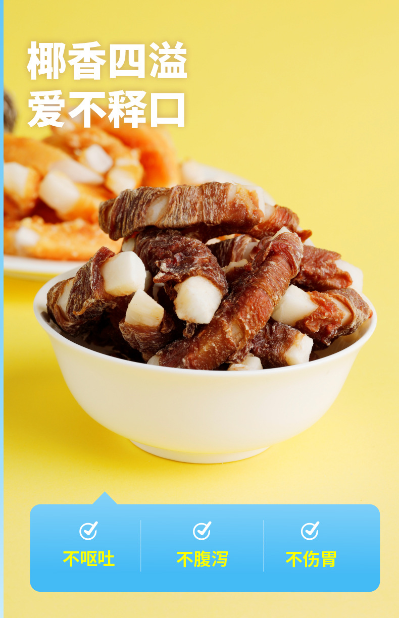 Bocadillos para perros, pollo, pato, barras de coco para mascotas, bocadillos de coco, dientes de molienda, bocadillos para perros adultos.