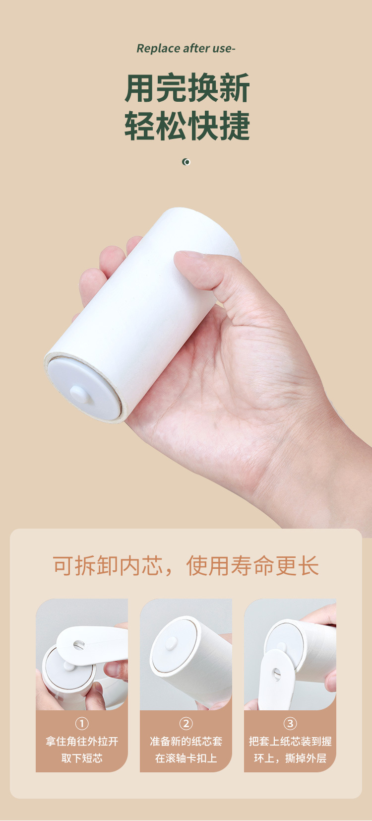 Dispositivo de adherencia del cabello rodillo cepillo de rodillo desgarrable cepillo de depilación pelo que se pega el pelo artefacto papel pegajoso rodar papel de reemplazo de papel de lágrima rollo de papel