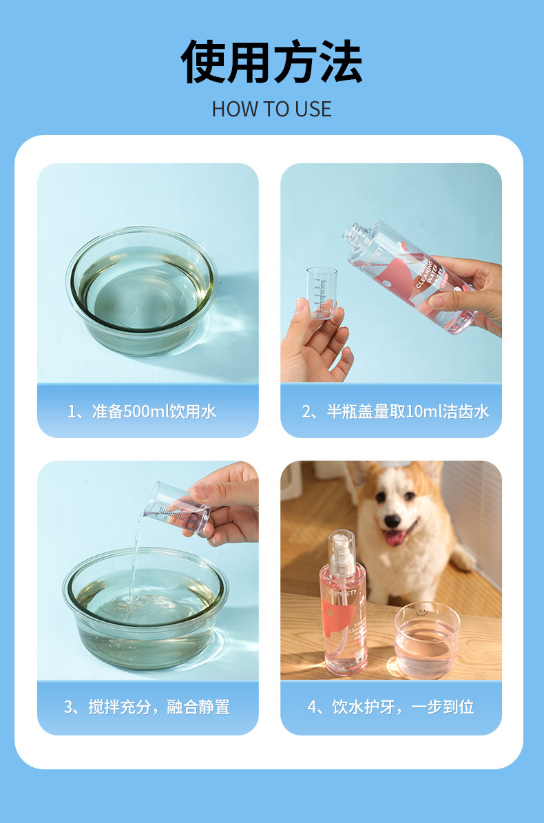 Agua de limpieza de dientes para mascotas para eliminar el mal aliento, eliminar el mal aliento, eliminar las piedras, limpiar los dientes, beber agua de limpieza de dientes, enjuague bucal para gatos, perros