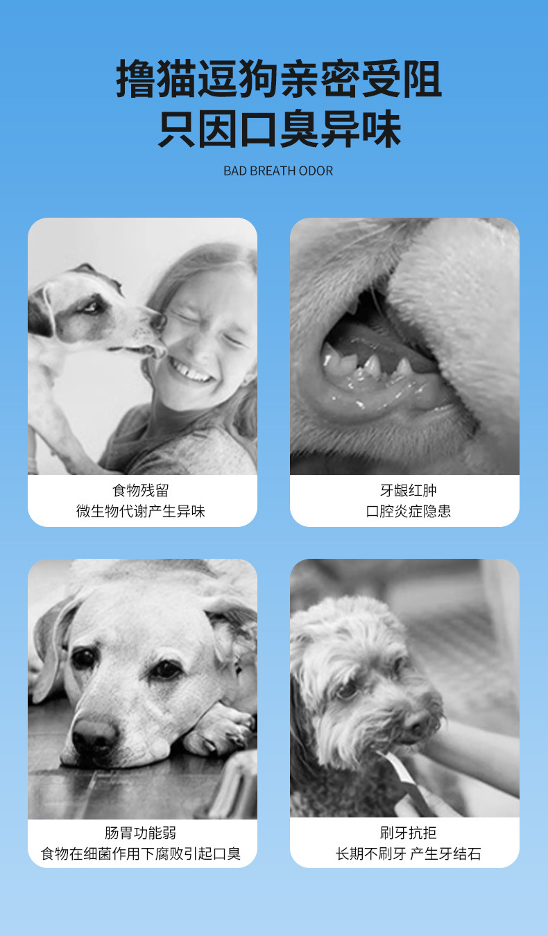 Nuevo perro enjuague bucal eliminar el mal aliento mascota gato dental cálculo dental limpieza agua gato oral suministros de limpieza al por mayor