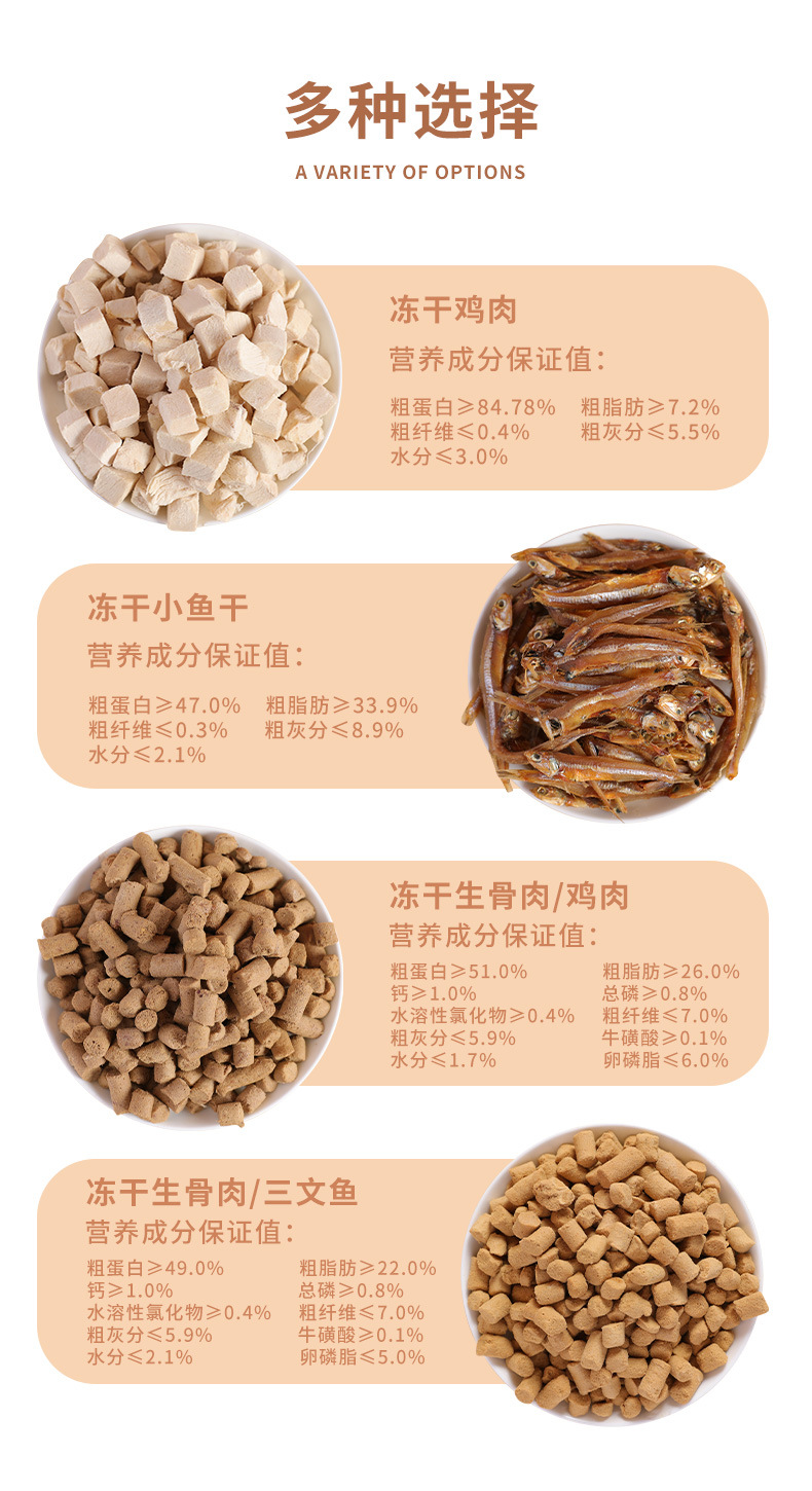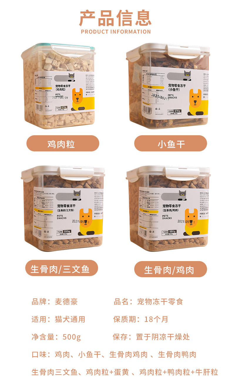 | Especificaciones | Carne cruda de pollo,Trece piezas liofilizadas,5 tipos de barriles mixtos,Yema de huevo de pollo,Yema de huevo (670g),Pechuga de pollo puro (580g),Granos de pollo (670g),Gránulos de hígado de pollo y pollo Gránulos de hígado de res (670g) |