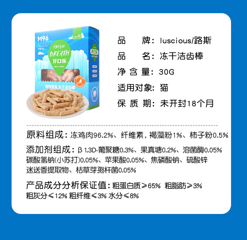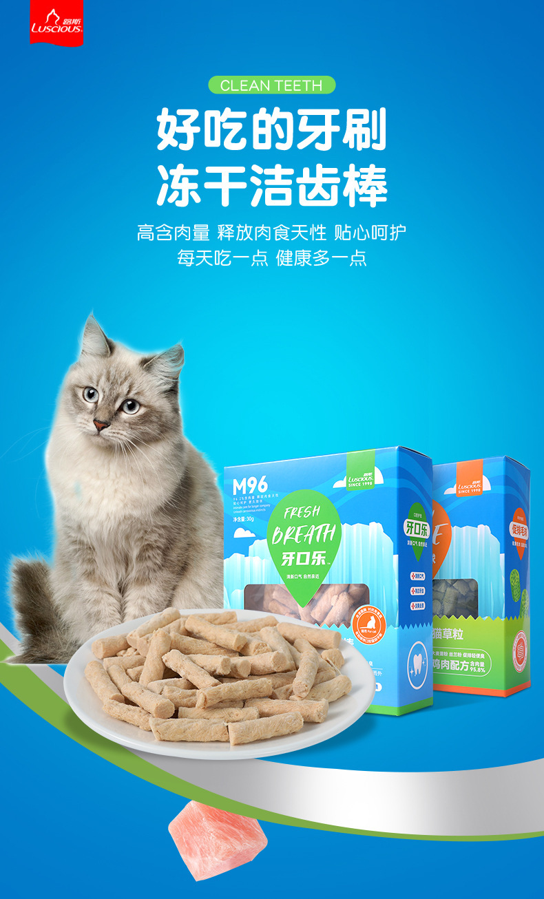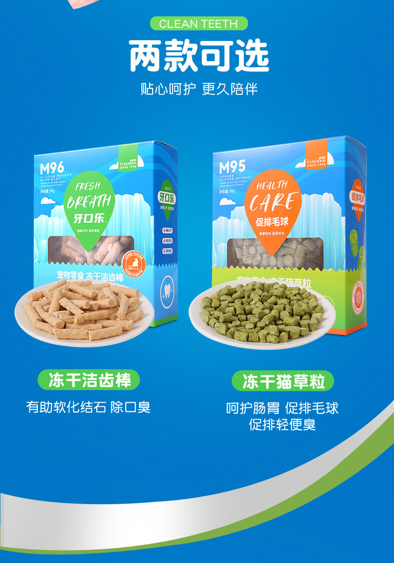 | Sabores | M96 varilla de limpieza de dientes, grano de hierba de gato M95 |