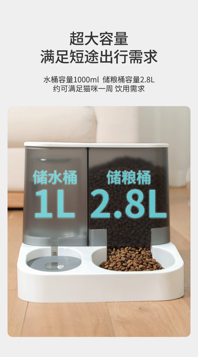 Mascota perro automático para beber y alimentación dispositivo 2.8L gran capacidad transparente visual tazón de almacenamiento de alimentos tazón de perro tazón gato