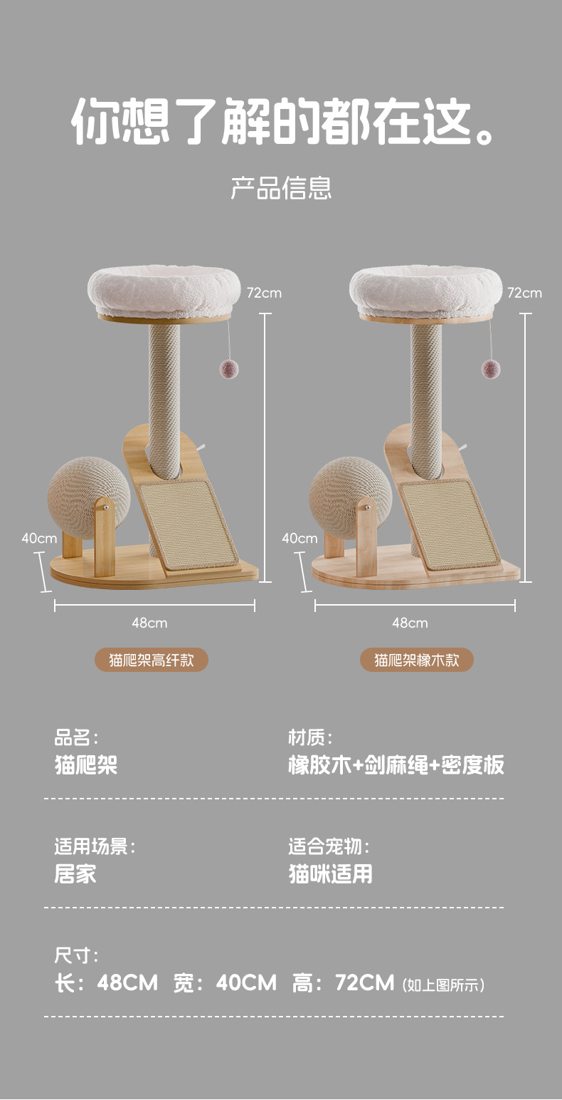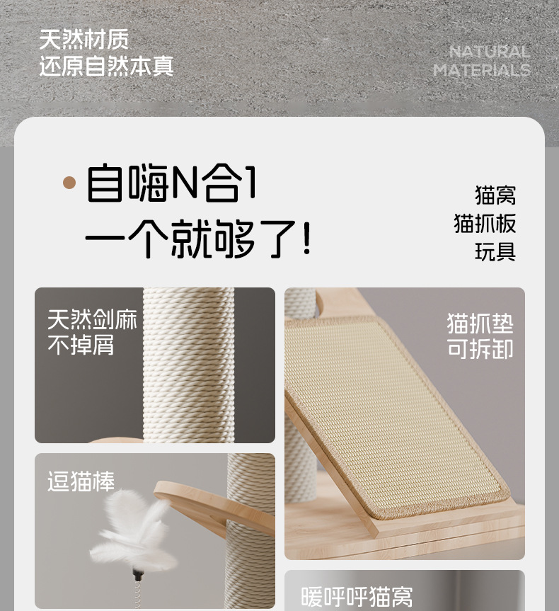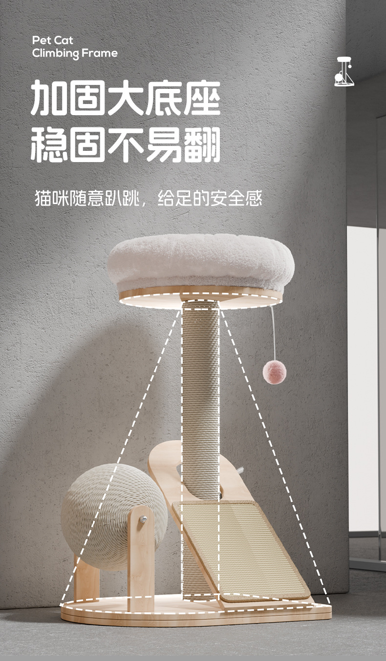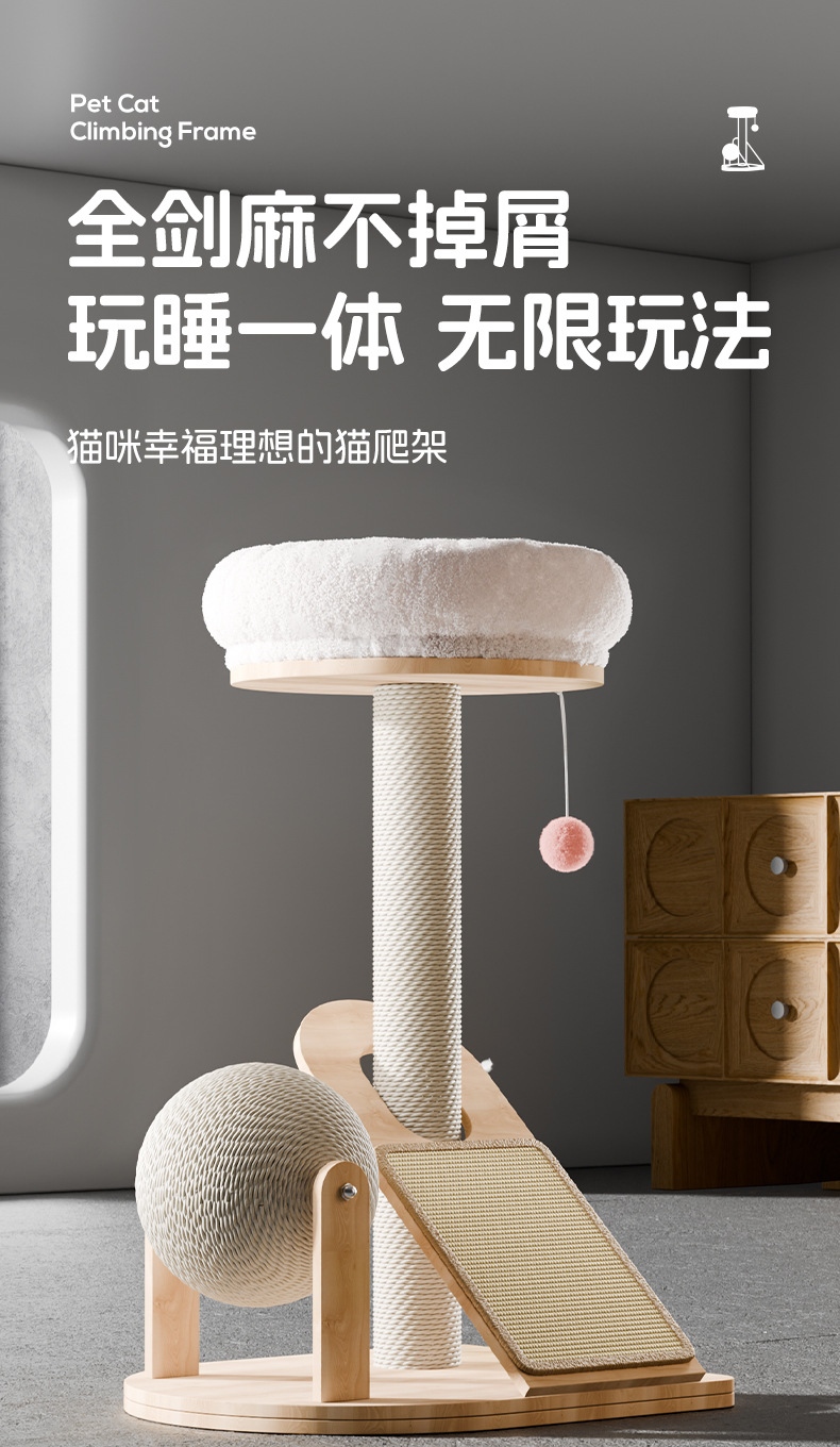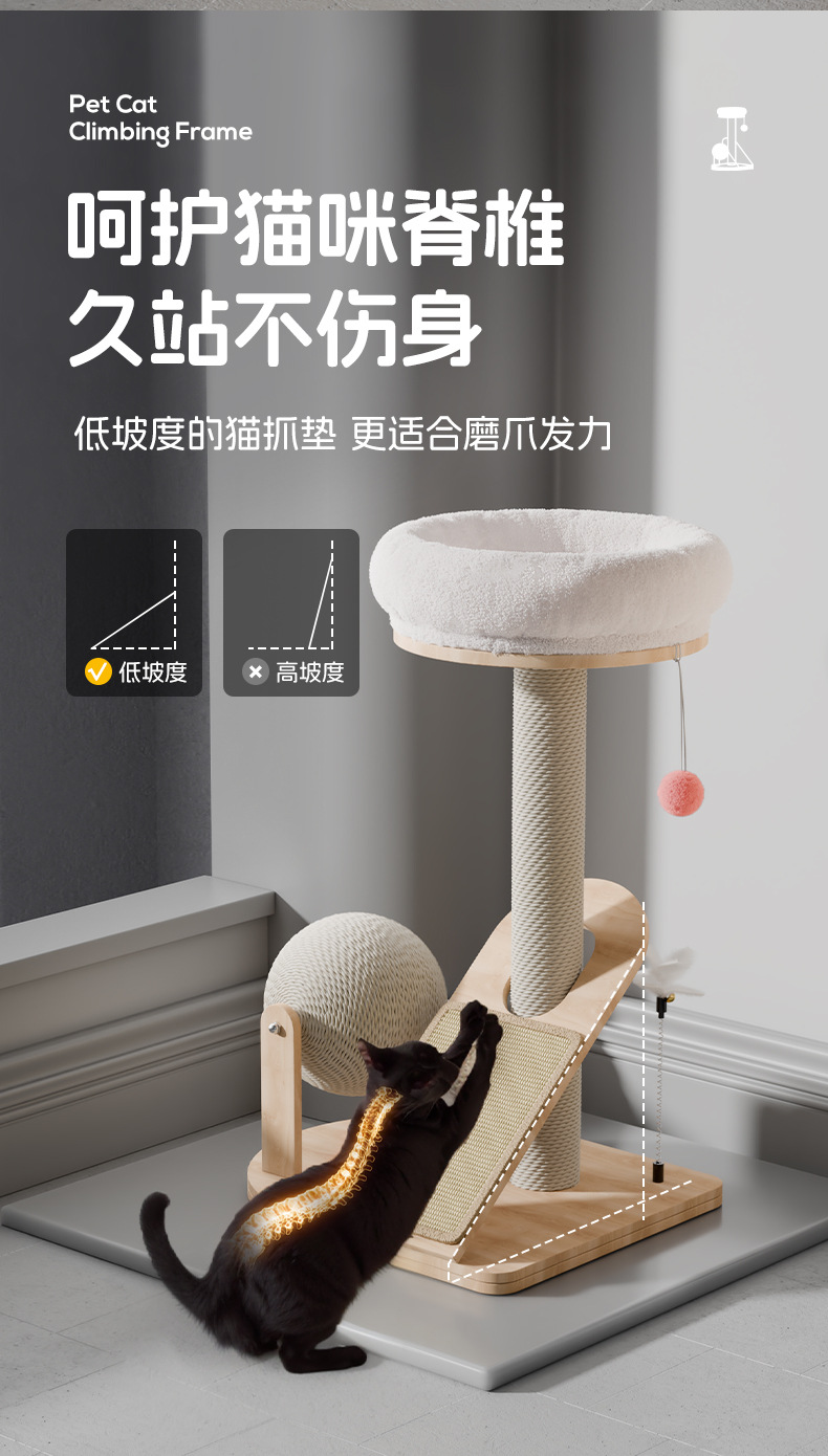 Marco de escalada para gatos, nido para gatos de madera maciza integrado, cuerda de sisal pequeña, tabla de agarre para gatos, juguete para gatos resistente al desgaste, poste de agarre para gatos vertical, marco para gatos