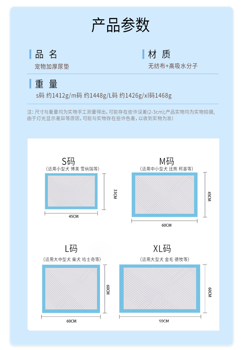 | Especificaciones | Código S 33 * 45cm - 100 piezas en paquete [espesado], tamaño M 45 * 60cm - 50 piezas en paquete [espesado], tamaño L 60 * 60cm - 40 piezas en paquete [espesado], tamaño XL 60 * 90cm - 20 piezas en paquete [espesado] |
