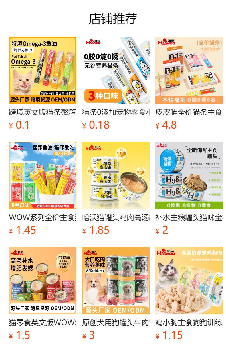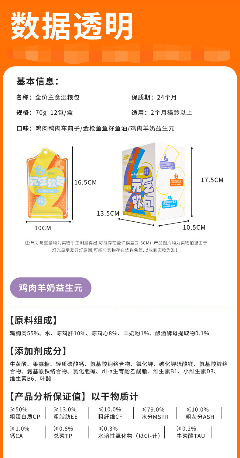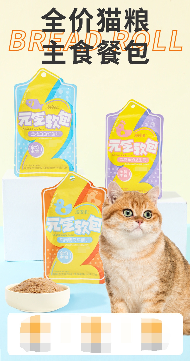 | Sabores | Paquete de comidas probióticas - leche de pollo y cordero, paquete de comidas probióticas - frente al carro de pollo y pato, paquete de comidas probióticas - aceite de semilla de atún y pescado |