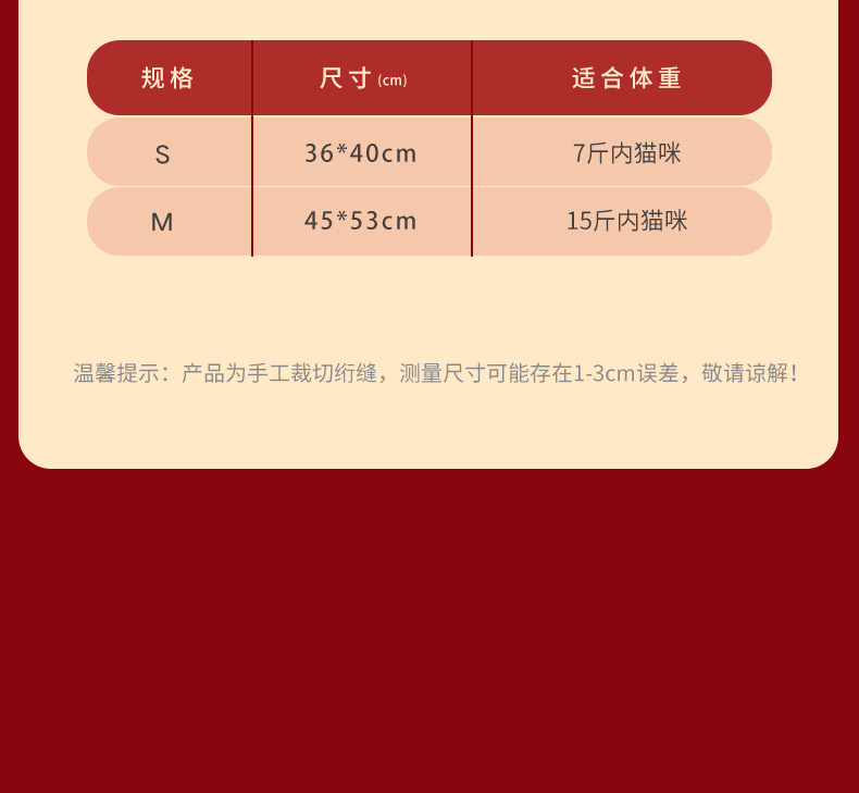 | Color | S (36 * 40 cm, adecuado para gatos de 7 kg), M (45 * 53 cm, adecuado para gatos de 15 kg) |