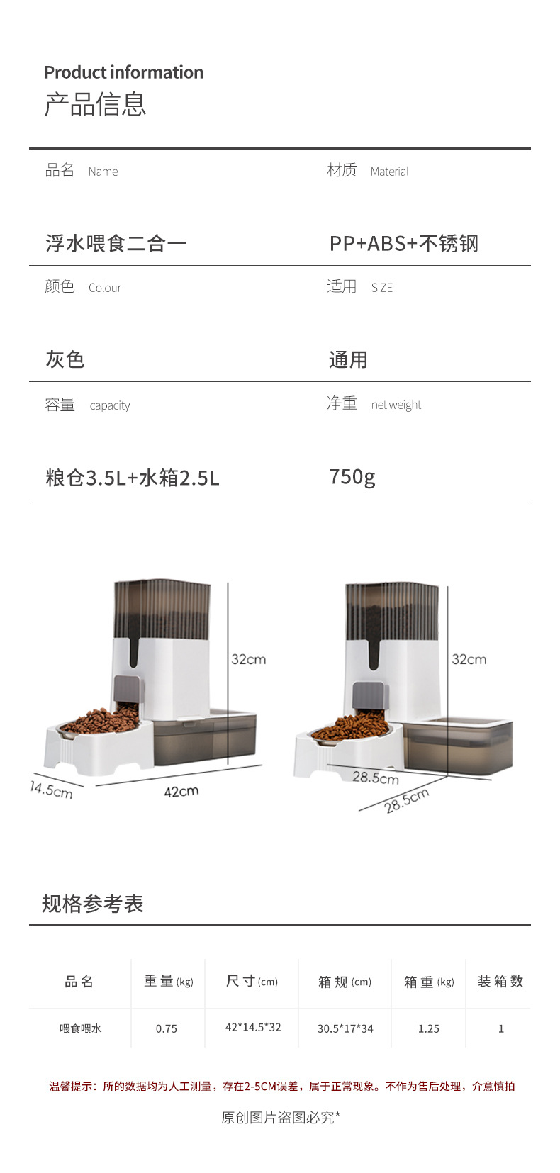 | Colores | Alimentación flotante dos en uno |