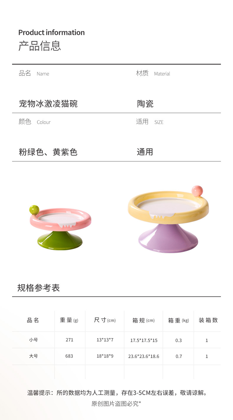 | Especificaciones | Cuenco helado para gatos Rosa Verde,Cuenco gato helado amarillo púrpura |