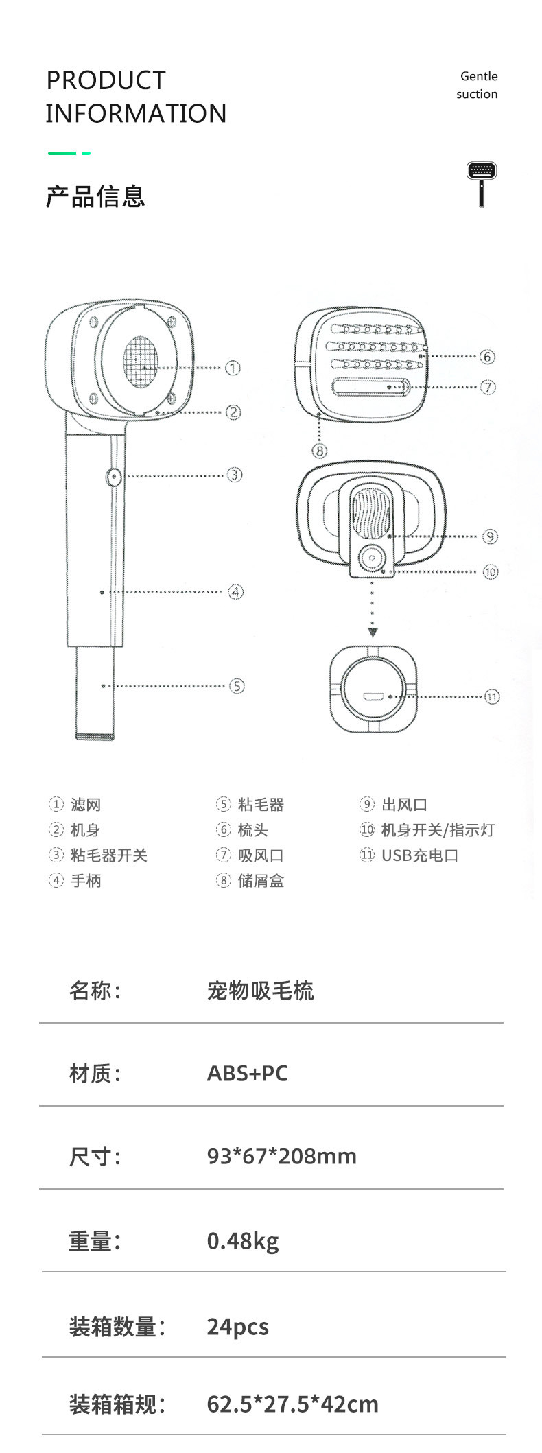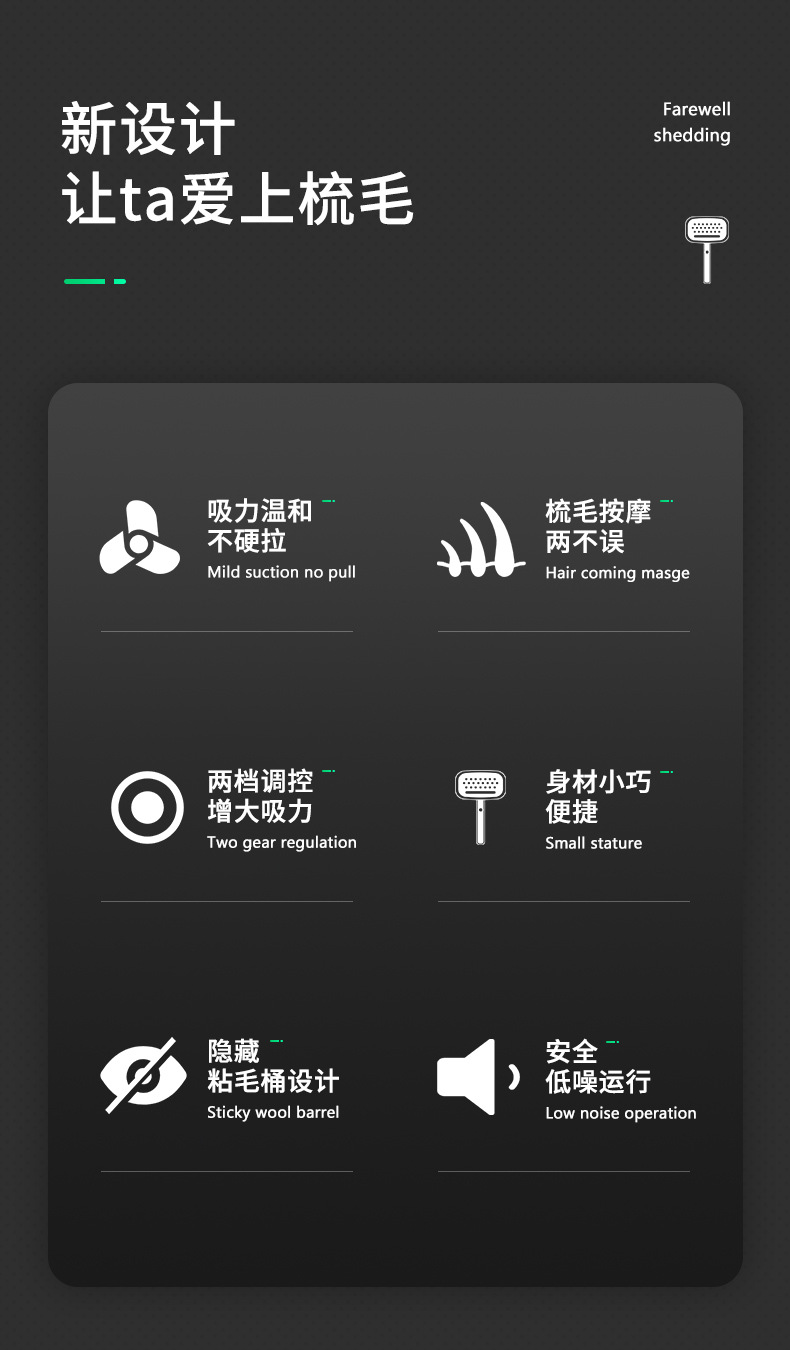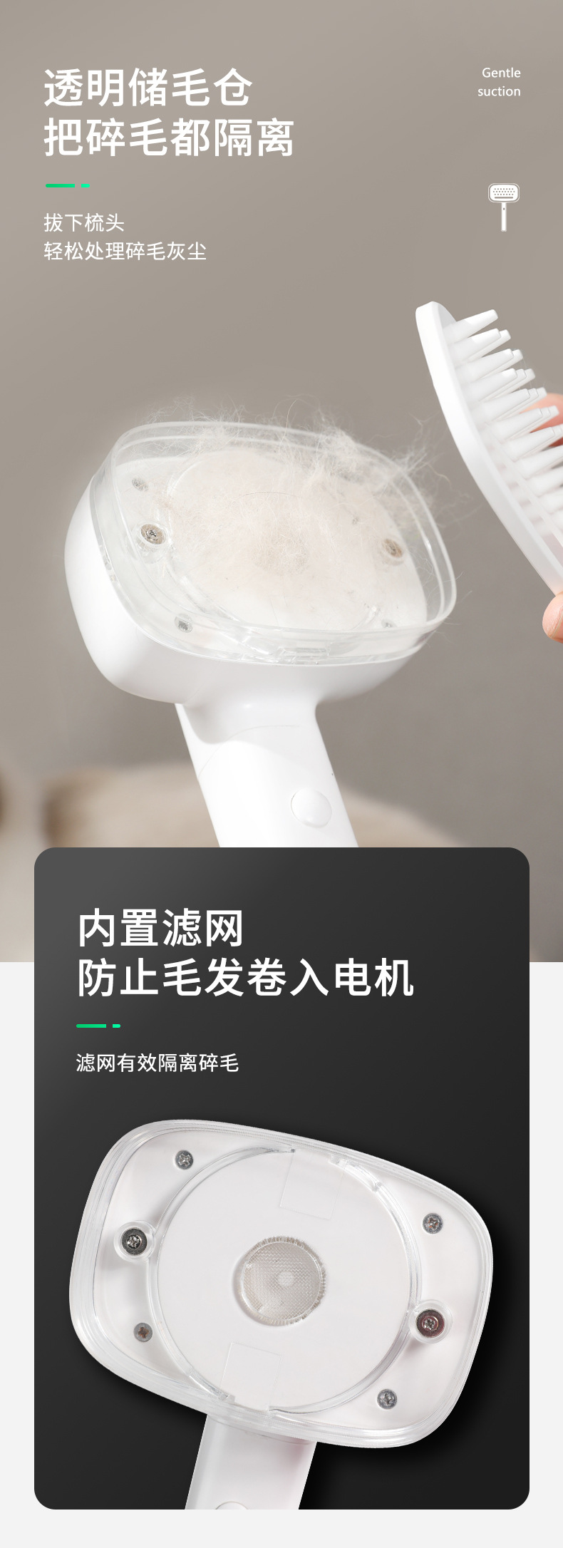 | Especificaciones | Peine eléctrico blanco de la succión del pelo |