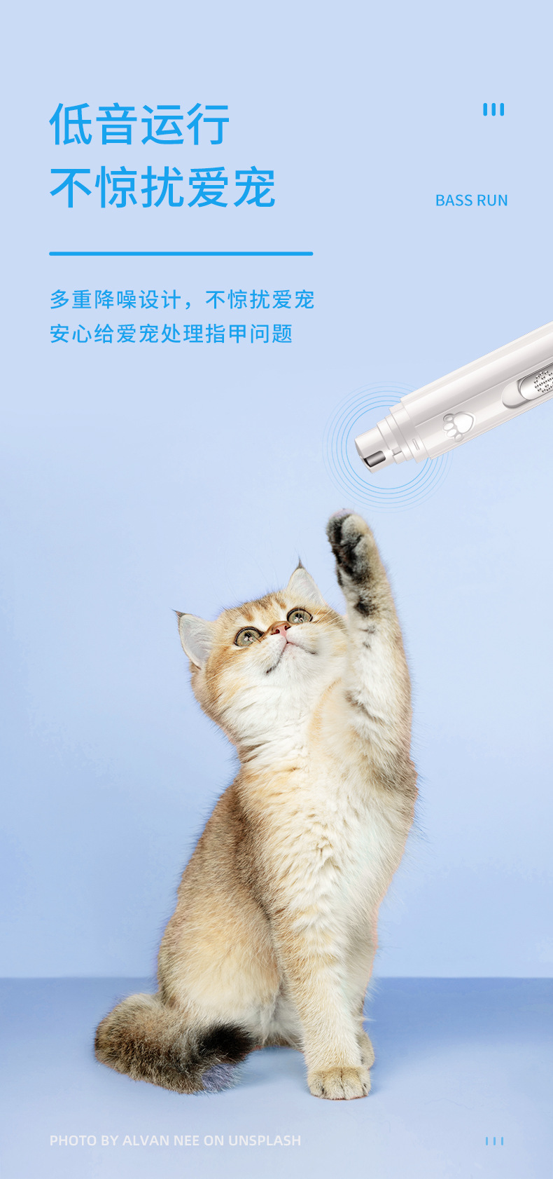 Pulidora de uñas para mascotas, cortaúñas, gato, perro, conejo, esmalte de uñas, gato y perro, cortaúñas eléctricas universales