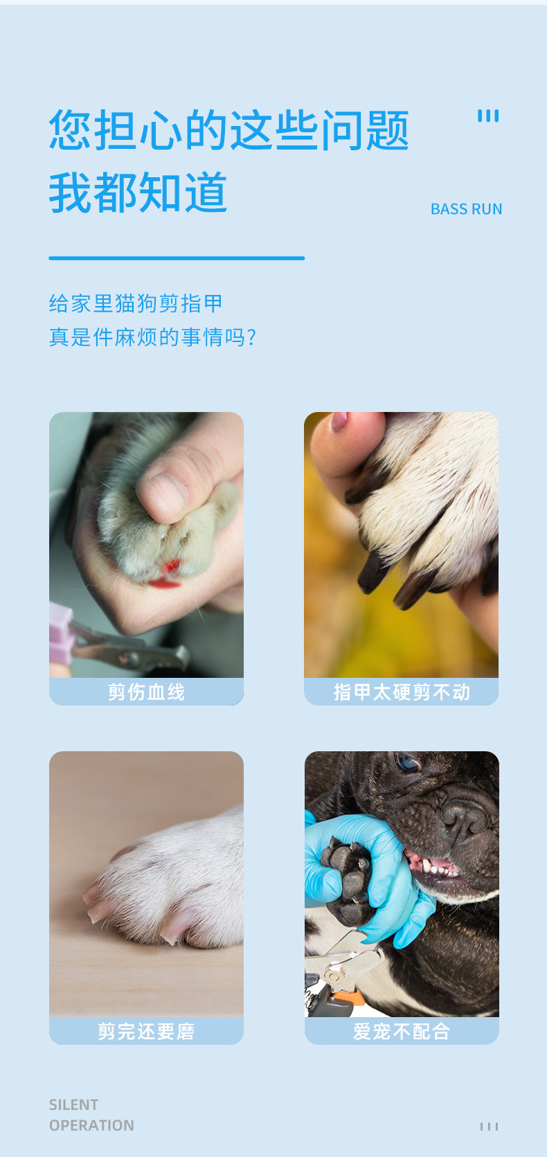 Suministro directo de fábrica nueva tienda de mascotas de alta gama se especializa en cortaúñas Limpieza de perros herramientas de belleza cortaúñas para mascotas