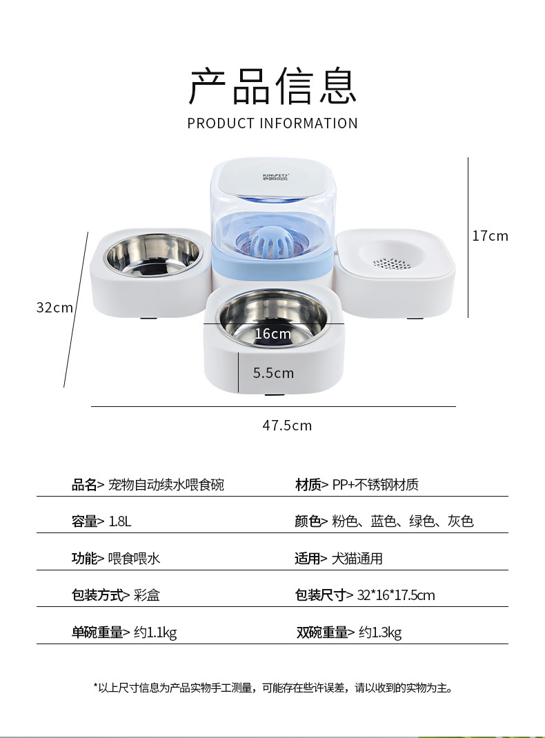 | Especificaciones | Alimentador de agua individual (azul),Alimentador de agua único (rosa),Dispensador de agua con un tazón (rosa),Dispensador de agua con un tazón (verde),Dispensador de agua con un solo recipiente (azul),Dispensador de agua con un tazón (gris),Dispensador de agua con tazones dobles (rosa),Dispensador de agua con cuencos dobles (verde),Dispensador de agua con cuencos dobles (azul),Dispensador de agua con cuencos dobles (gris),Dispensador de agua con tazón único (verde + gris),Dispensador de agua con un solo recipiente (Rosa + gris),Dispensador de agua con un solo recipiente (amarillo + gris),Dispensador de agua con cuencos dobles (verde + gris),Dispensador de agua con cuencos dobles (Rosa + gris),Dispensador de agua con cuencos dobles (amarillo + gris) |