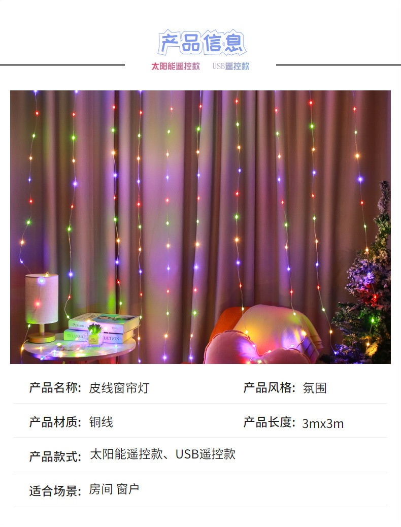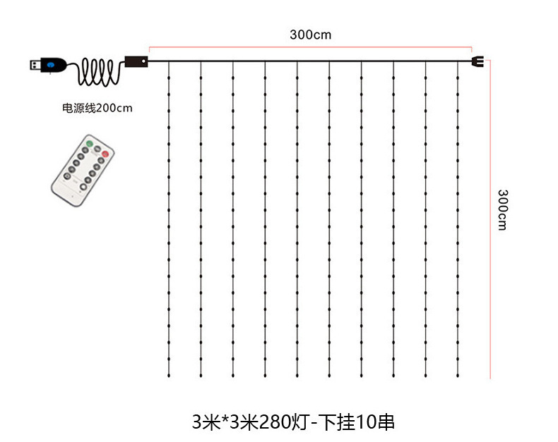 | Potencia | Control remoto de agua USB 3m 10 colgar 280 lámparas [10 colgadas], control remoto USB de ocho funciones 3 * 3m 300 lámparas [10 colgadas] |