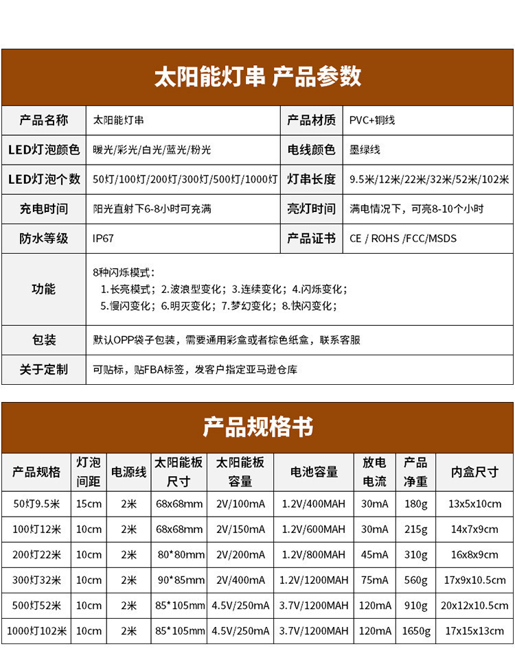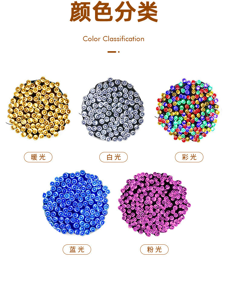 | Potencia | 50 lámparas 9,5 metros, 8 funciones, 100 lámparas 12 metros, 8 funciones, 200 lámparas 22 metros, 8 funciones, 300 lámparas 32 metros, 8 funciones, 500 lámparas 52 metros, control remoto 8 funciones, 5 metros 20 lámparas, 8 funciones, 6.5 metros 30 lámparas, 8 |