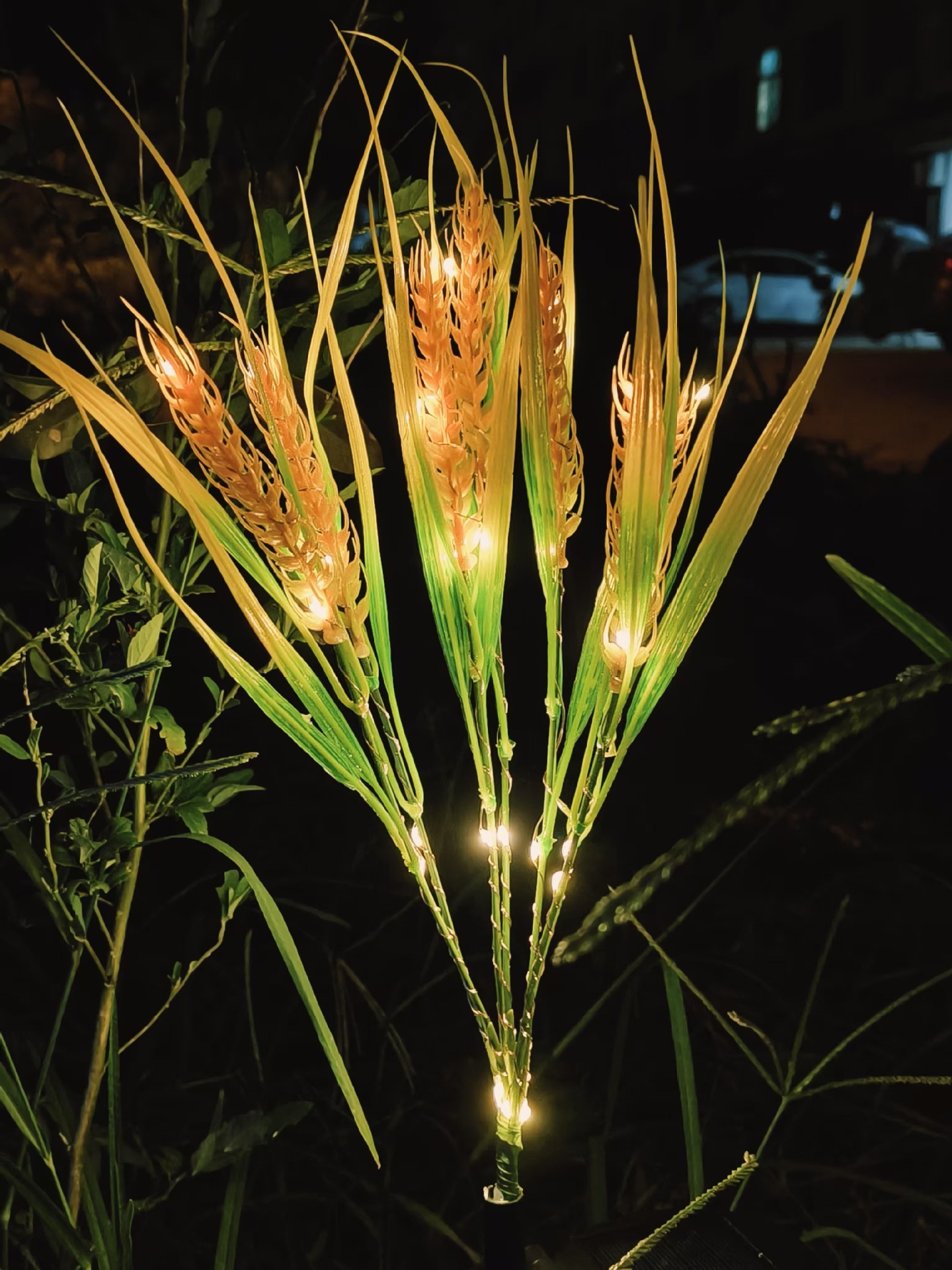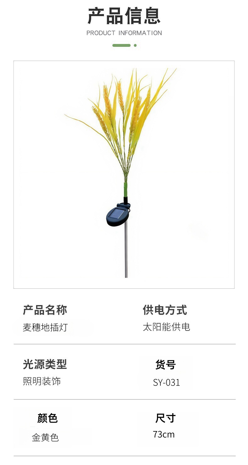 | Especificaciones | Siete espigas de trigo insertadas en el suelo con luces [siempre encendidas] |