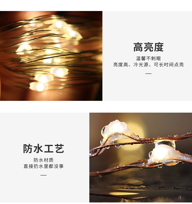 灯珠颜色:暖白、冷白、蓝色、绿色、粉色、紫色、红色、黄色、暖粉、四彩(红绿黄蓝四色一个灯珠一个颜色),七彩闪烁(单颗灯珠自动变色闪烁)