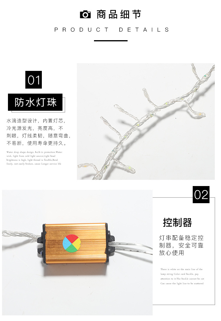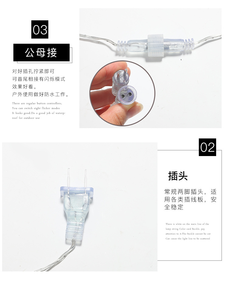 | Potencia | La longitud instalada de OPP es de 2,5 metros, 232 lámparas, cuerdas de lámparas digitales, cuerdas de lámparas de lluvia, enchufes de lámparas de lluvia se pueden conectar en serie con 30 juegos. |