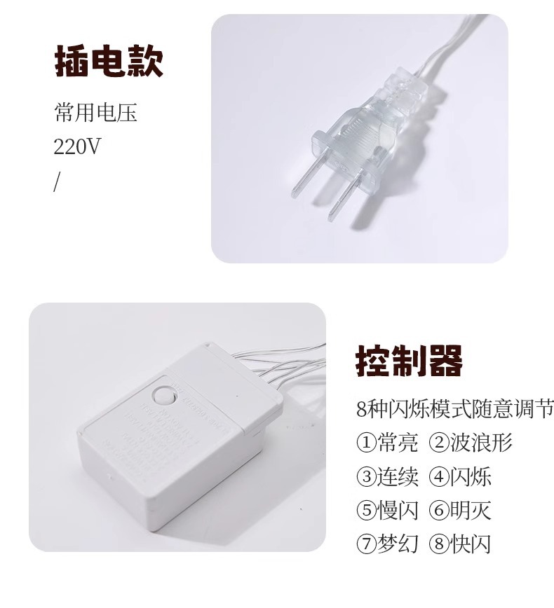 | Poder | 2 baterías siempre encendidas de 2 metros y 10 luces,Tres secciones con batería intermitente de 3 metros y 20 luces,Tres baterías con 6 metros y 40 luces parpadeantes,Tres baterías con 10 metros y 80 luces parpadeantes,2 metros 10 luces usb siempre brillante,3 m 20 luces usb,6 m 40 luz usb siempre brillante,10 metros 80 luces usb siempre encendidas,10 metros 100 luces enchufables con función de flash 8,12 metros 100 luz solar con 8 funciones de flash |