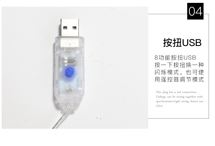 | Potencia | Normalmente iluminado USB 1m 10 lámparas, Normalmente iluminado USB 2m 20 lámparas, Normalmente iluminado USB 3m 30 lámparas, Normalmente iluminado USB 5m 50 lámparas, Normalmente iluminado USB 10m 100 lámparas, Normalmente iluminado USB 20m 200 lámparas, Control remoto USB 2m 20 lámparas, Control remoto USB 3m 30 lámparas, Control remoto USB 5m 50 lámparas, Control remoto USB 10m 100 lámparas, Control remoto USB 20m 200 lámparas |