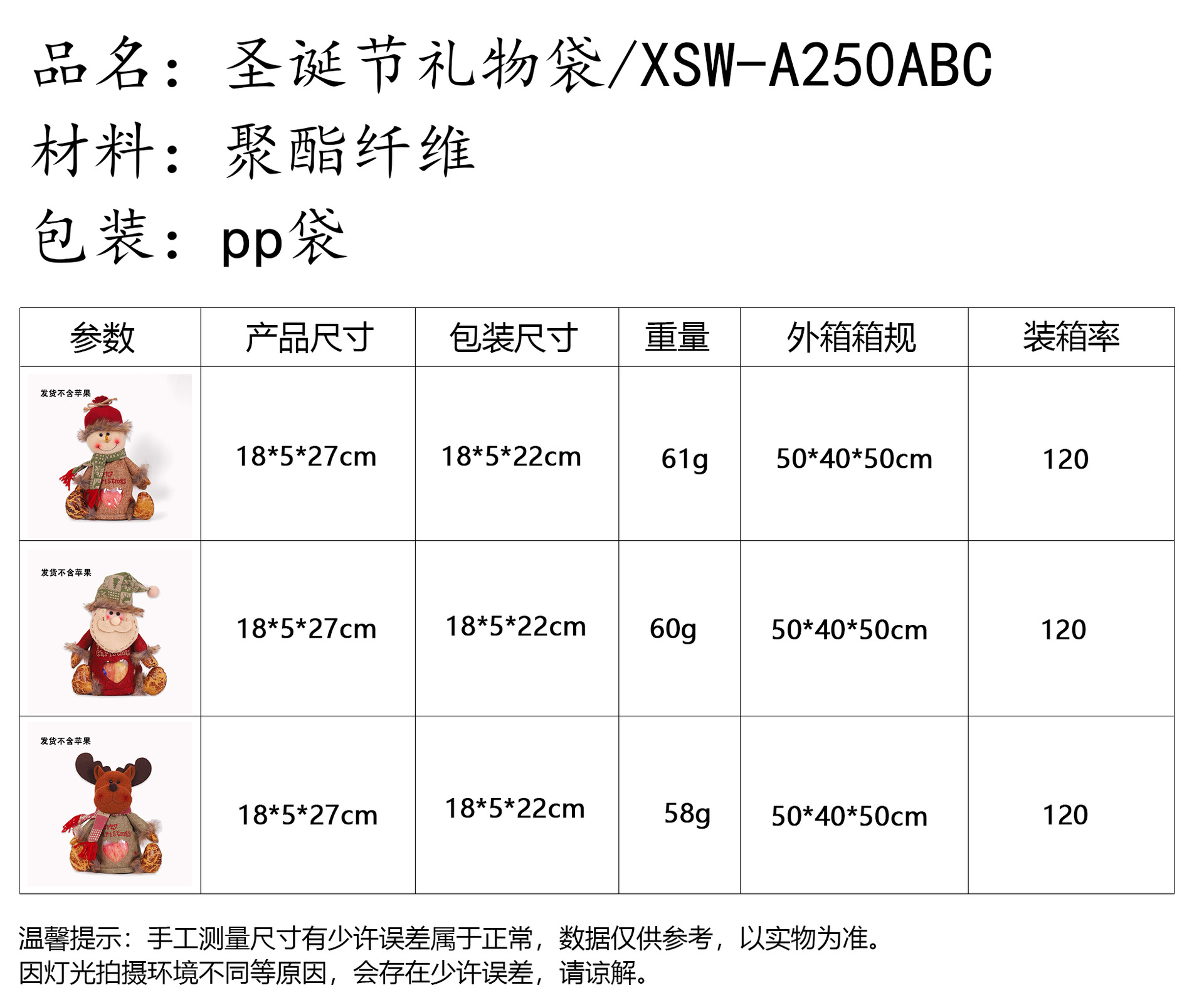 | Color | Bolsa de manzana de muñeco de nieve,Bolsa de manzana para ancianos,Elk bolsa de manzana |