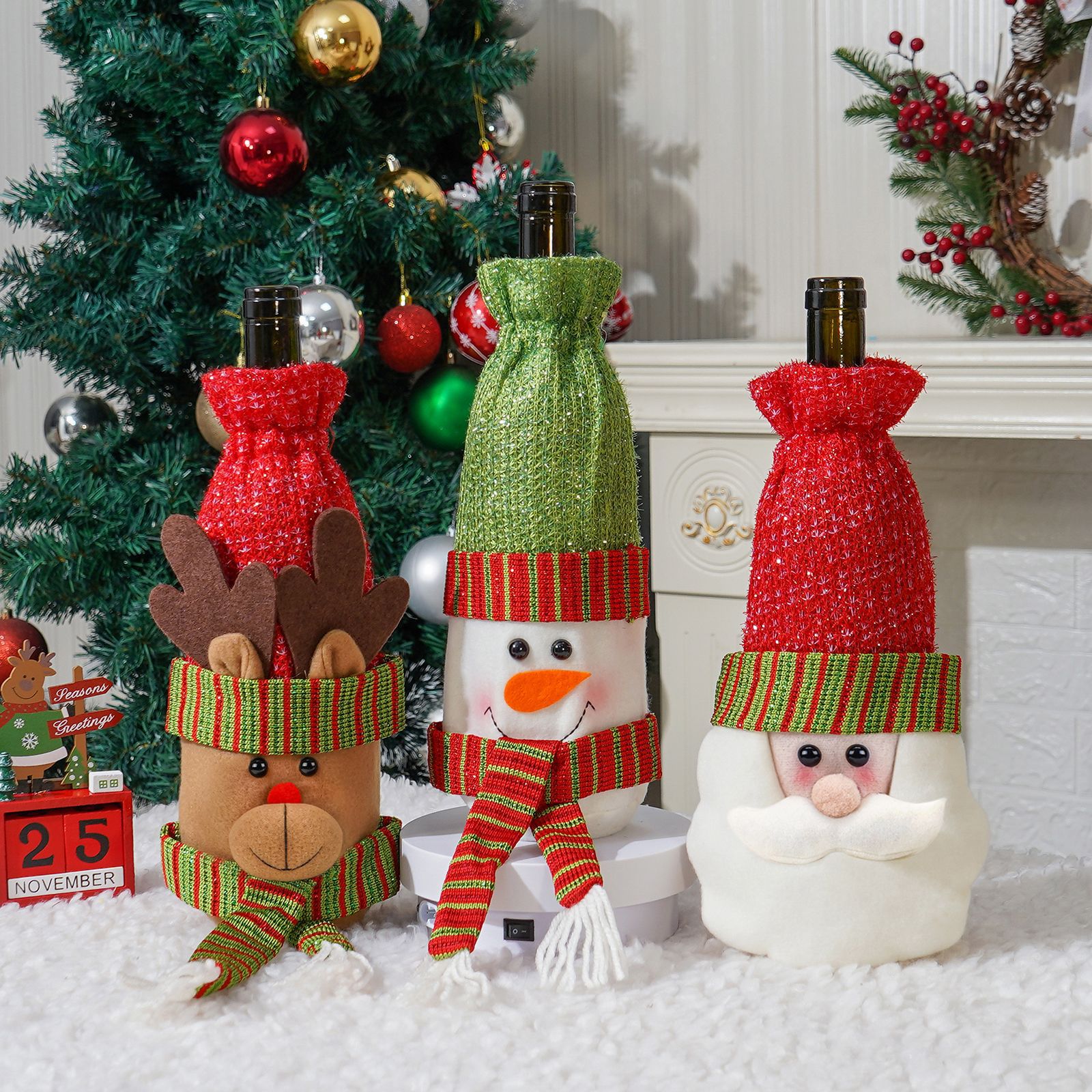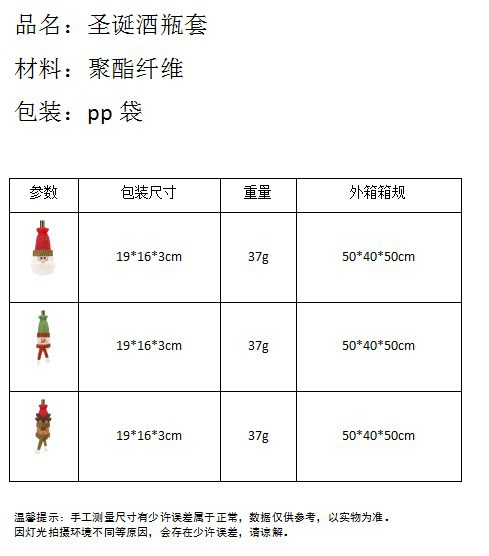 | Color | Cubierta de botella de vino para ancianos,Cubierta de la botella de vino de muñeco de nieve,Cubierta de la botella de vino Elk |