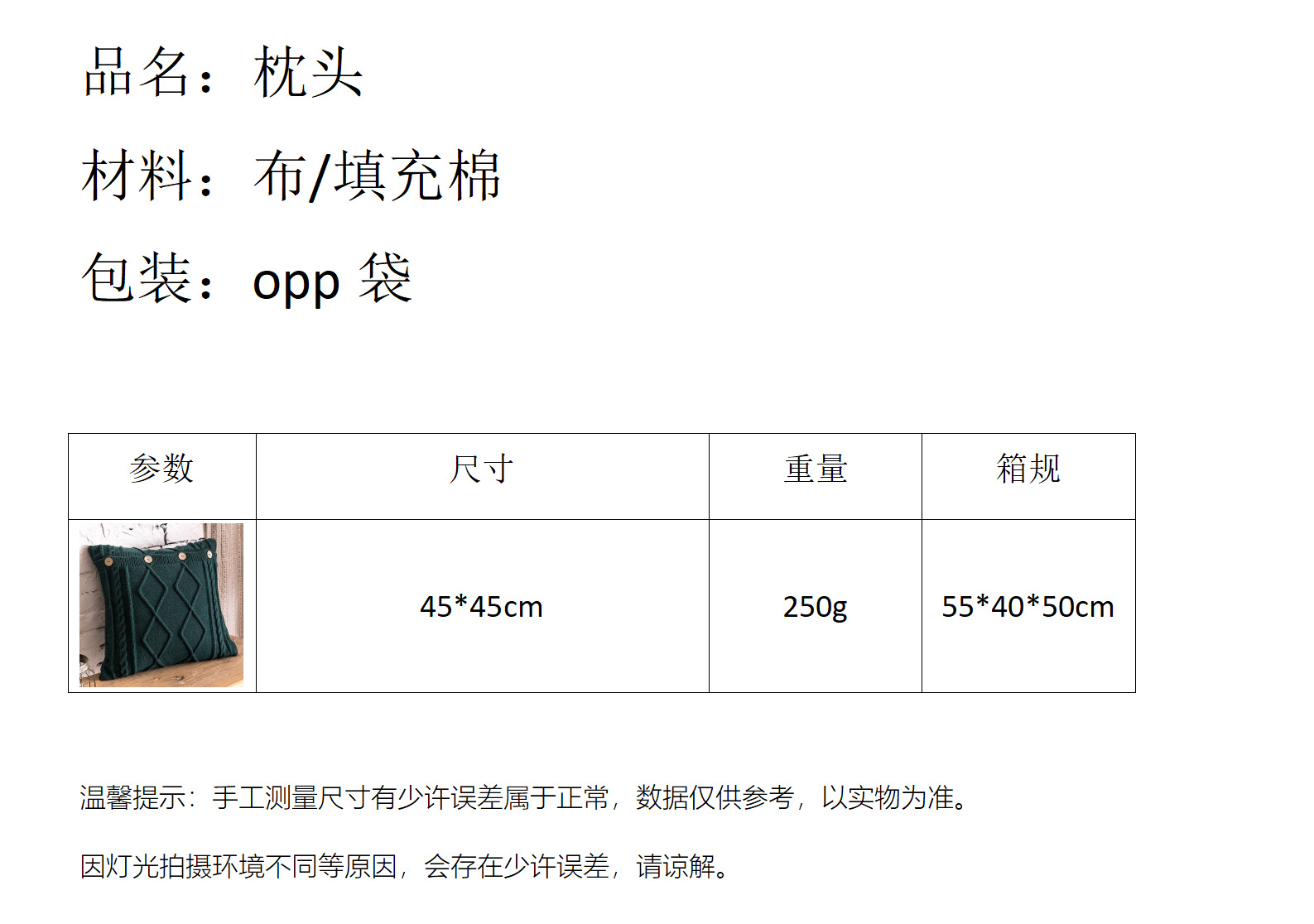 | Artículo No. | Almohada |