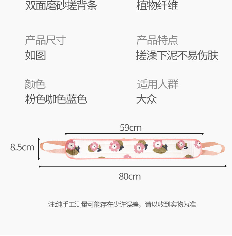 | Color | Frota la toalla de baño [rosa], frota la toalla de baño [azul], frota la toalla de baño [color café], tira de la espalda [color rosa], tira de la espalda [color café], tira de la espalda [color café], frota la toalla de baño + tira de la espalda [color rosa], frota la toalla de baño + tira de la espalda [color azul], frota la toalla de baño + tira de la espalda [color café] |