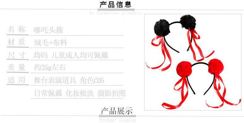 | Color | Un paquete de bandas de cabello negras, un paquete de bandas de cabello rojas, una bolsa de clipes de cabello Nezha |