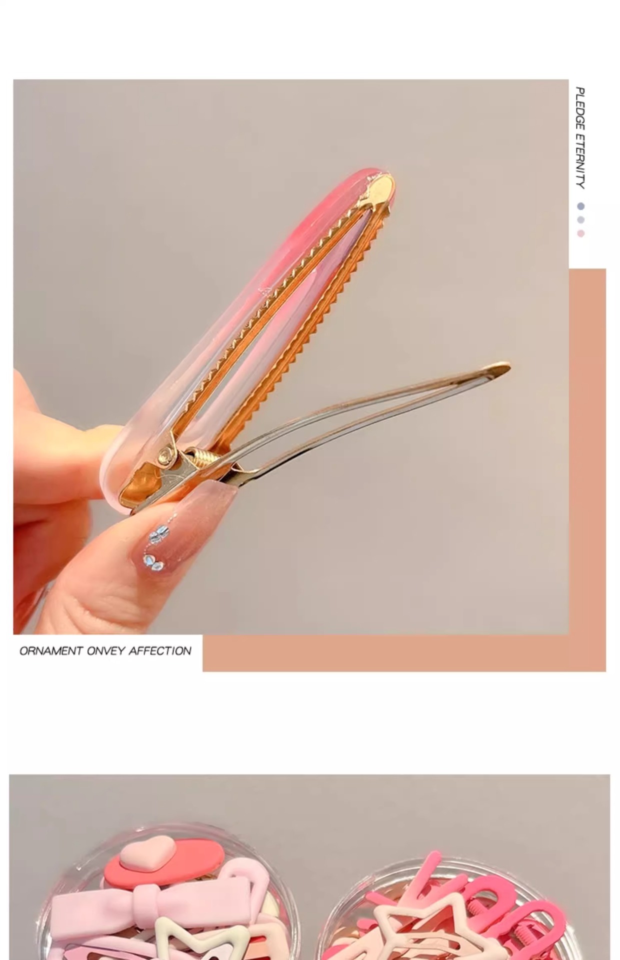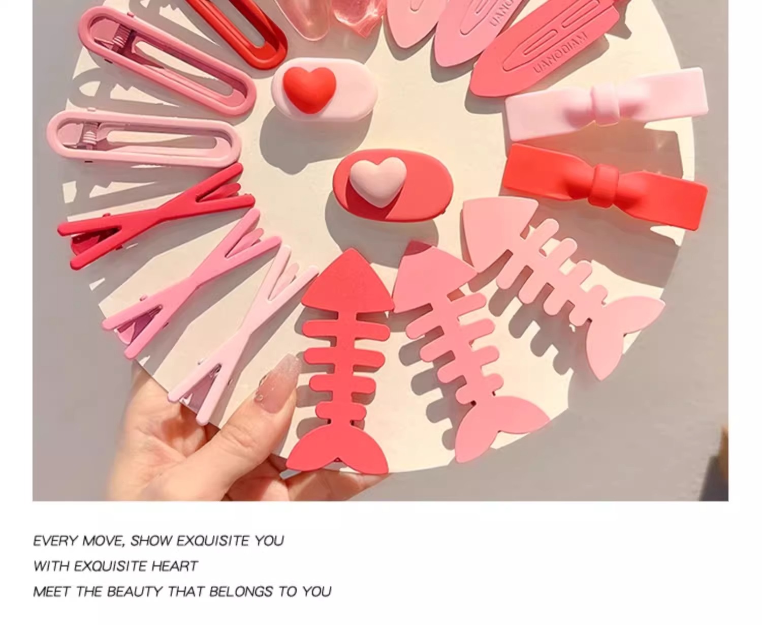 | Color | 3 horquillas de amor, 3 horquillas de meteoros, 3 horquillas rectangulares, 3 horquillas de gotas de agua, 3 horquillas cuadradas, 3 olas de gotas de agua, 3 horquillas de hueso de pescado, 3 horquillas de estrellas, 3 horquillas cruzadas, 3 horquillas elípticas, 3 horquillas sin marcas, 2 horquillas de amor de gotas de agua |