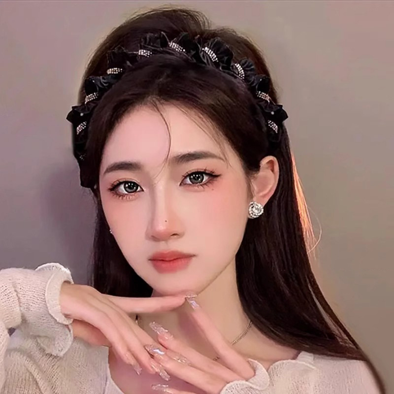 | Color | Aro de pelo negro de tela de diamante flash |