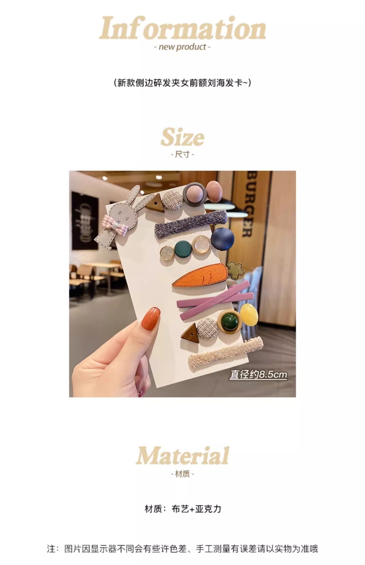 | Colores | 6 #5 trajes de amor.,8 # Marrón 10 piezas.,11 # [El mismo estilo de ciervo blanco] 10 paquetes de colores.,17 #8 piezas de amor púrpura.,19 # Mika juego de 14 piezas.,23 # Serie amarilla de girasol 14 piezas.,27 #8 piezas de amor rosa.,31 # Mika 13 piezas.,35 # Juego de mezcla y combinación de versión pequeña naranja de 10 piezas.,37 # Conejito M set 8 piezas.,38 # Mika juego de 9 piezas.,39 #9 piezas de estrellas amarillas.,40 # polvo de pasta de frijoles 8 piezas.,42 # Juego de 14 piezas de blanco lechoso.,53 #10 piezas de color.,56 # Juego de 7 piezas de amor azul y verde.,60 # # oso color café juego de 10 piezas.,61 #8 pajarita de oreja.,62 # Juego de conejito M 8 piezas.,73 # Juego de pajarita de amor 9 piezas.,76 # Juego de pata de oso de café de leche 8 piezas.,78 #6 piezas de onda mixta.,79 #7 piezas de clip de palabra de color.,80 #11 piezas de temperamento.,81 # Juego de olas de 7 piezas.,91 #5 MIU set. |