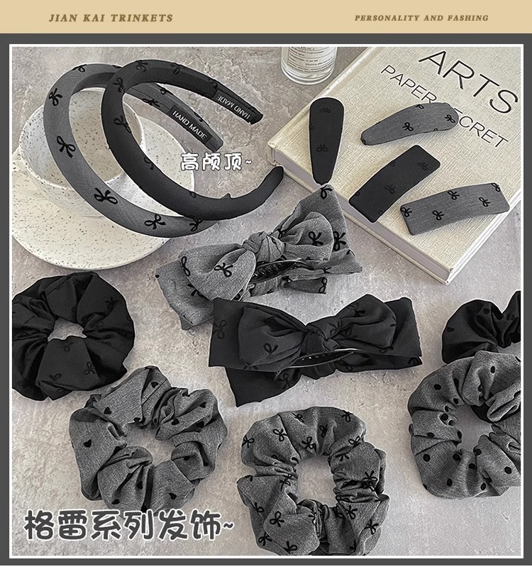 | Color | 1# esponja gris banda de cabello, 2# arco negro, banda de pelo, 3 # [en gris 1 paquete], 4 # [Negro 1 paquete], 5 # Bow Negro, 6# arco gris., #7 Amor negro, 8 # punto negro de onda, 9 # amor gris, 10 # punto de onda gris. |