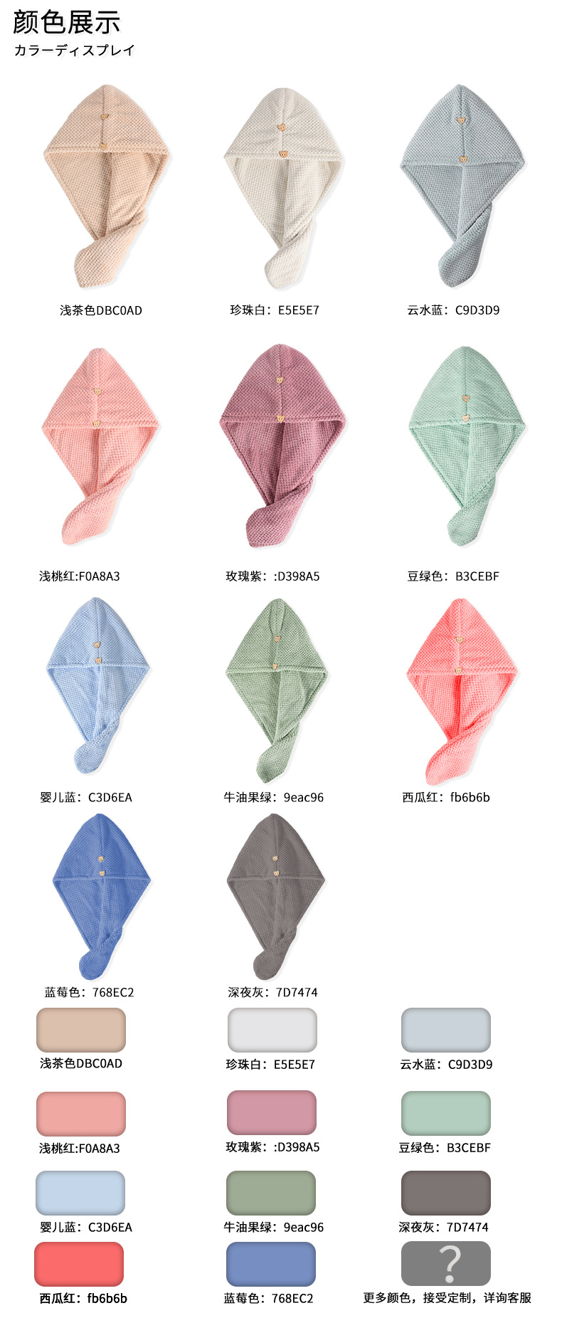 | Color | Una sola capa de color rosa claro.,Azul bebé de una sola capa.,Capa única marrón claro.,Blanco perla de una sola capa.,Azul de una sola capa de la nube.,Color arándano de una sola capa.,Una sola capa tarde en la noche gris.,Doble capa azul bebé.,Doble capa de color rosa claro.,Doble blanco perla.,Doble capa de color marrón claro.,Doble capa azul nube.,Doble rojo sandía. |
