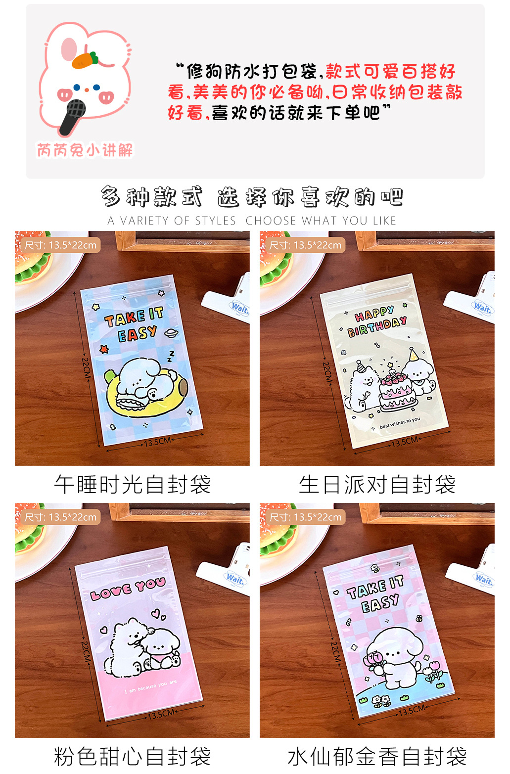 | Especificaciones y modelos | Bolso ziplock corazón rosa,Bolsa ziplock para la hora de la siesta,2 # cereza de arándano,3 # Oso de flores,5 # Tulipanes de cuadrícula verde,6 # Tulipán púrpura,Linda bolsa ziplock cachorro |