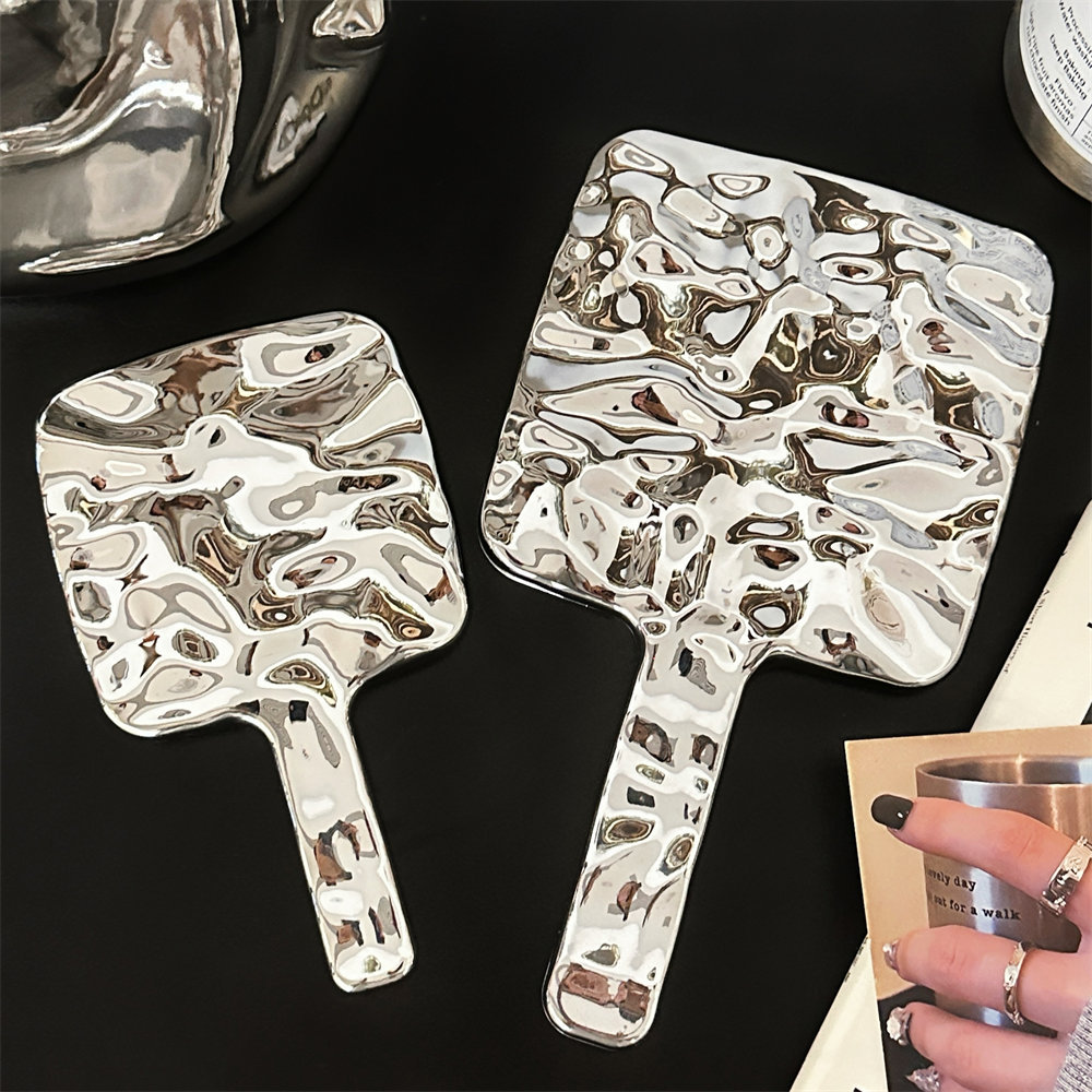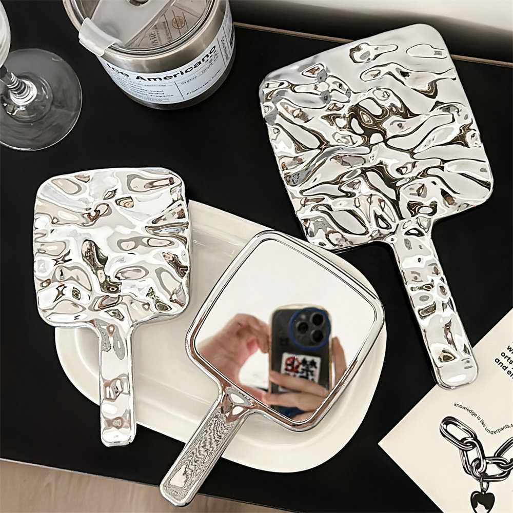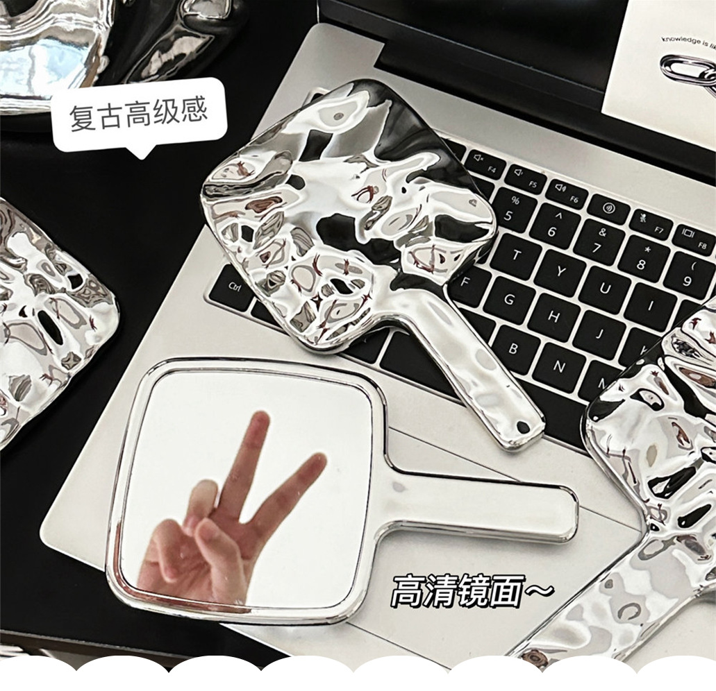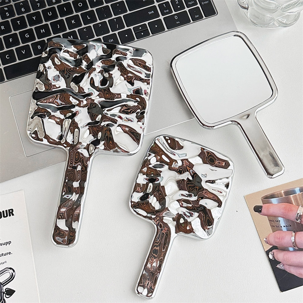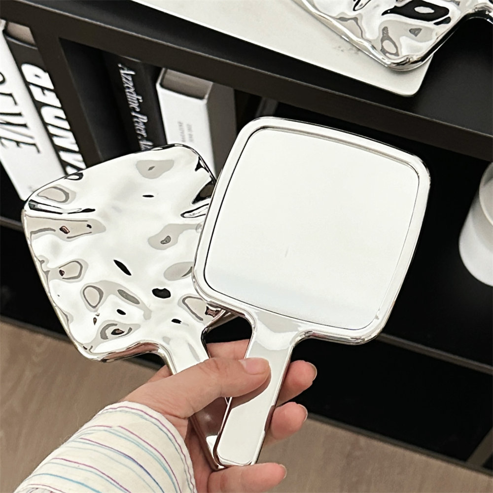 Espejo de mano de alto valor Espejo de maquillaje portátil portátil Espejo de maquillaje de niña de moda Manija de galvanoplastia cuadrada Espejo de vestidor