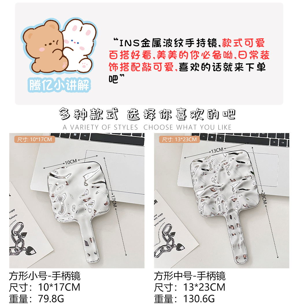 1 # Espejo cuadrado pequeño con mango,2 # Espejo cuadrado mediano con mango,1 # peine plegable portátil