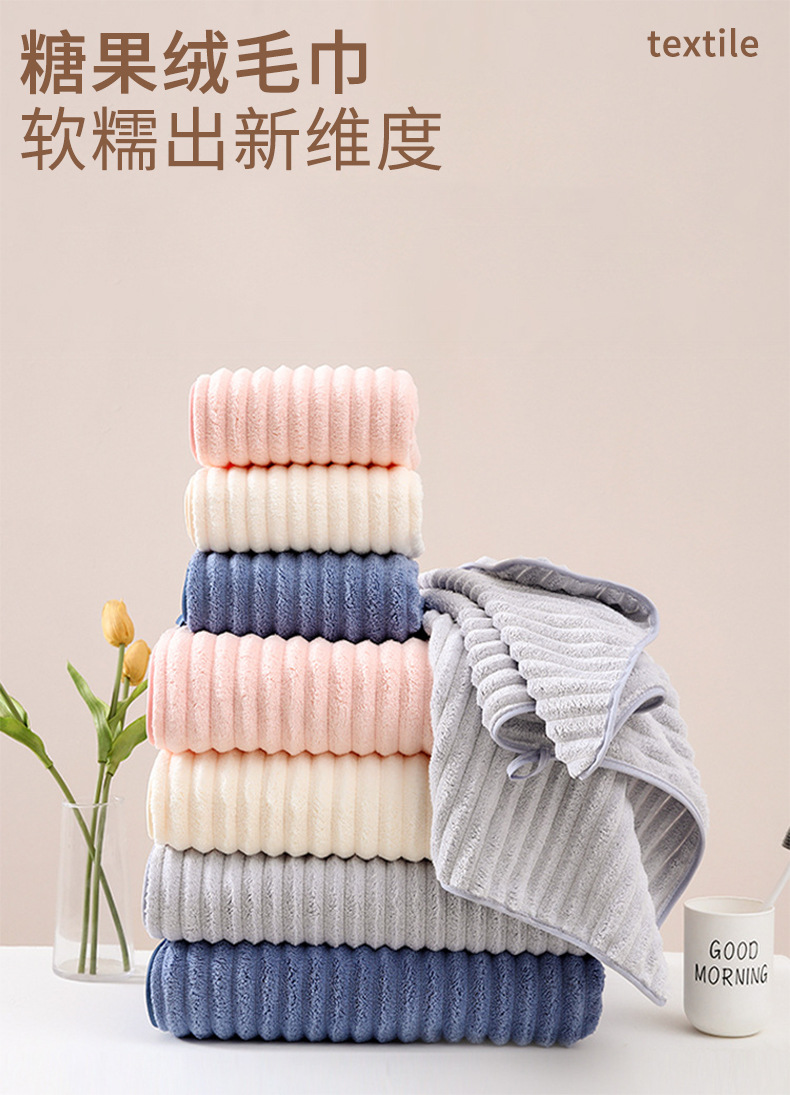 Toalla de terciopelo coral engrosada Toalla de cara de terciopelo de doble cara borde absorbente no-algodón a rayas Toalla de secado al por mayor