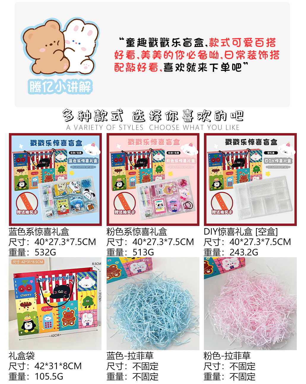 | Colores | 1 # Caja de regalo sorpresa de bricolaje [caja vacía],2 # Caja de regalo sorpresa azul (bolsa de regalo gratis),3 # Caja de regalo sorpresa rosa (bolsa de regalo gratis),4 # Bolsa de regalo,5 # Azul-Hierba de Lafite,6 # Rafia rosa |