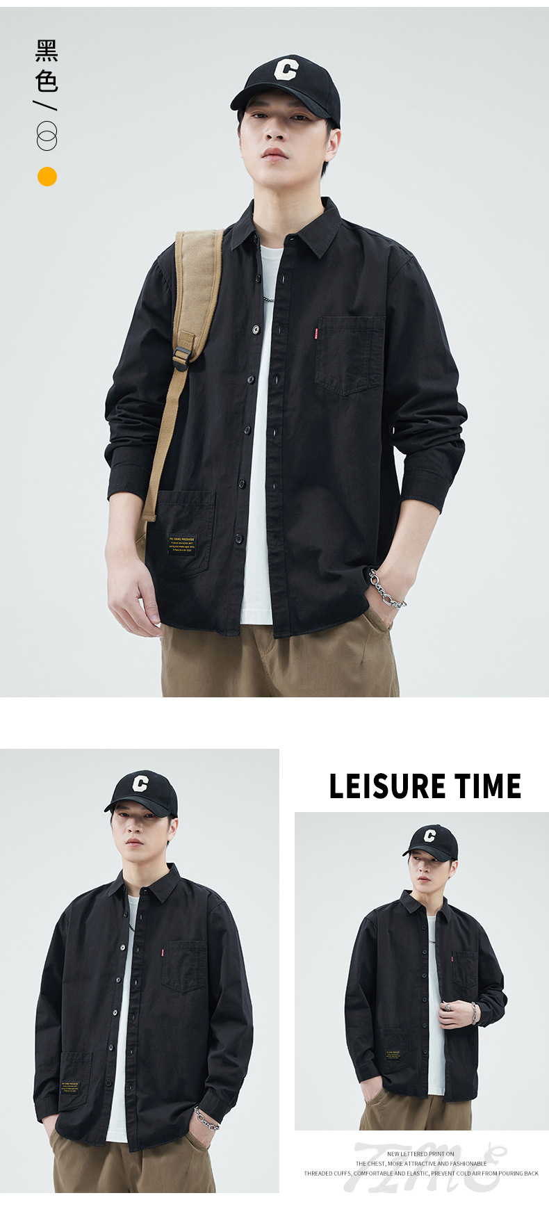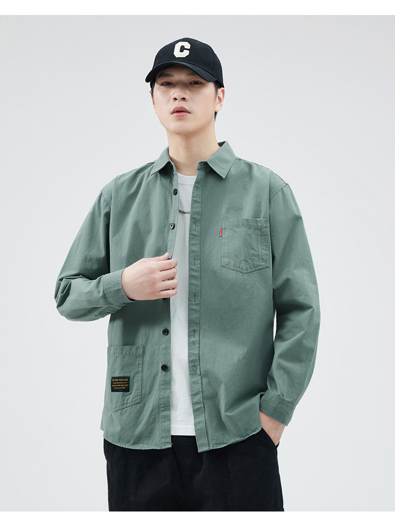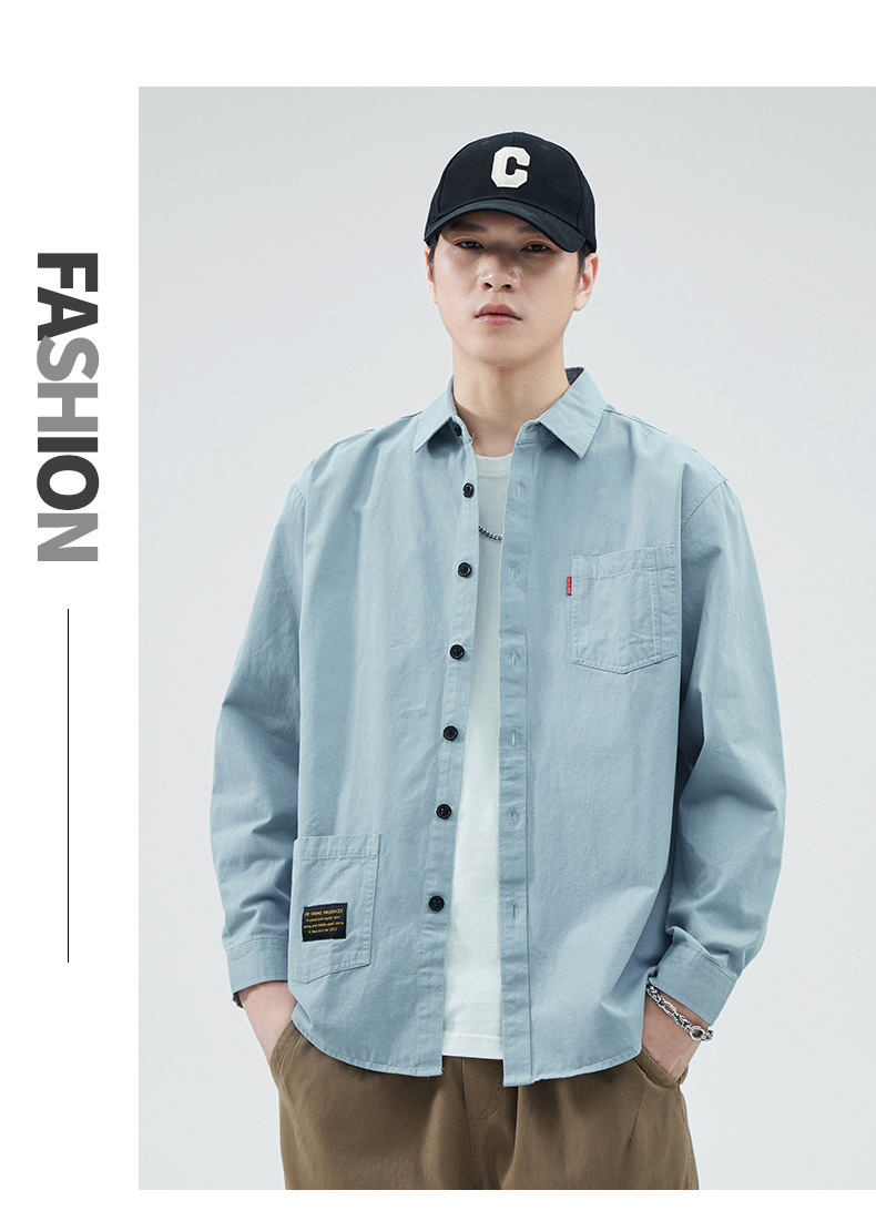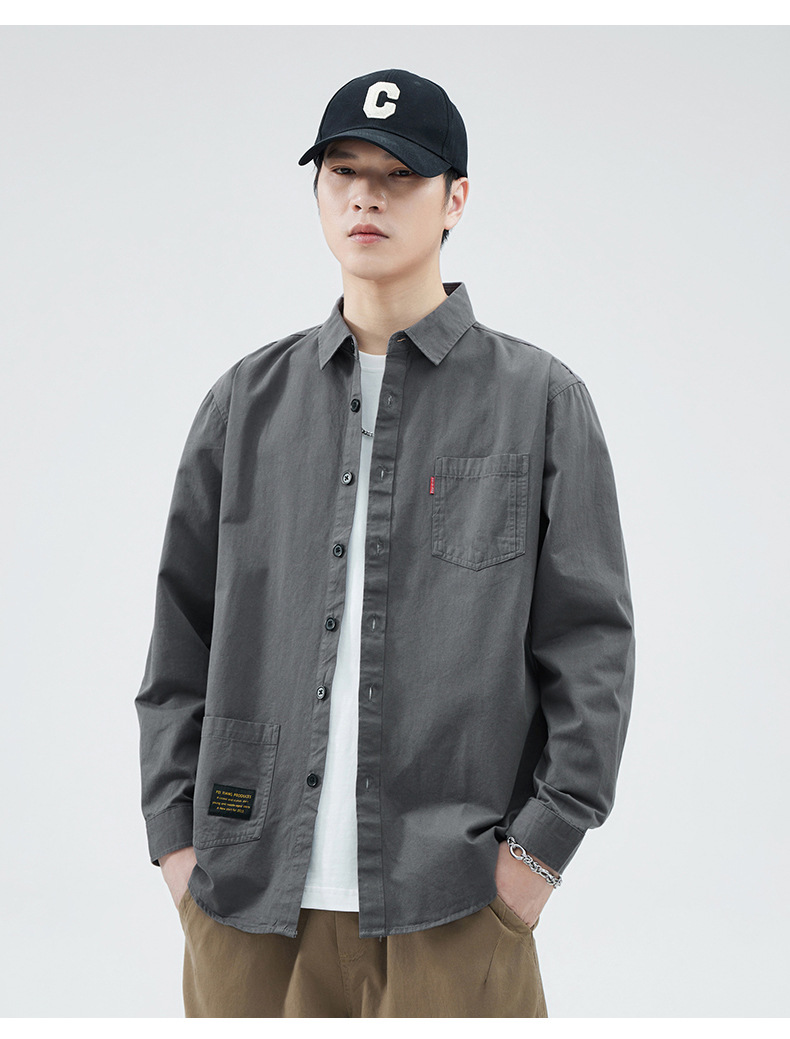 Ropa DE TRABAJO suelta Camisa de algodón camisa de los hombres de alto grado de estilo coreano suelto casual simple bolsillo único