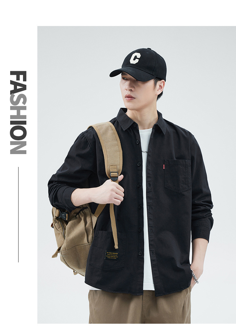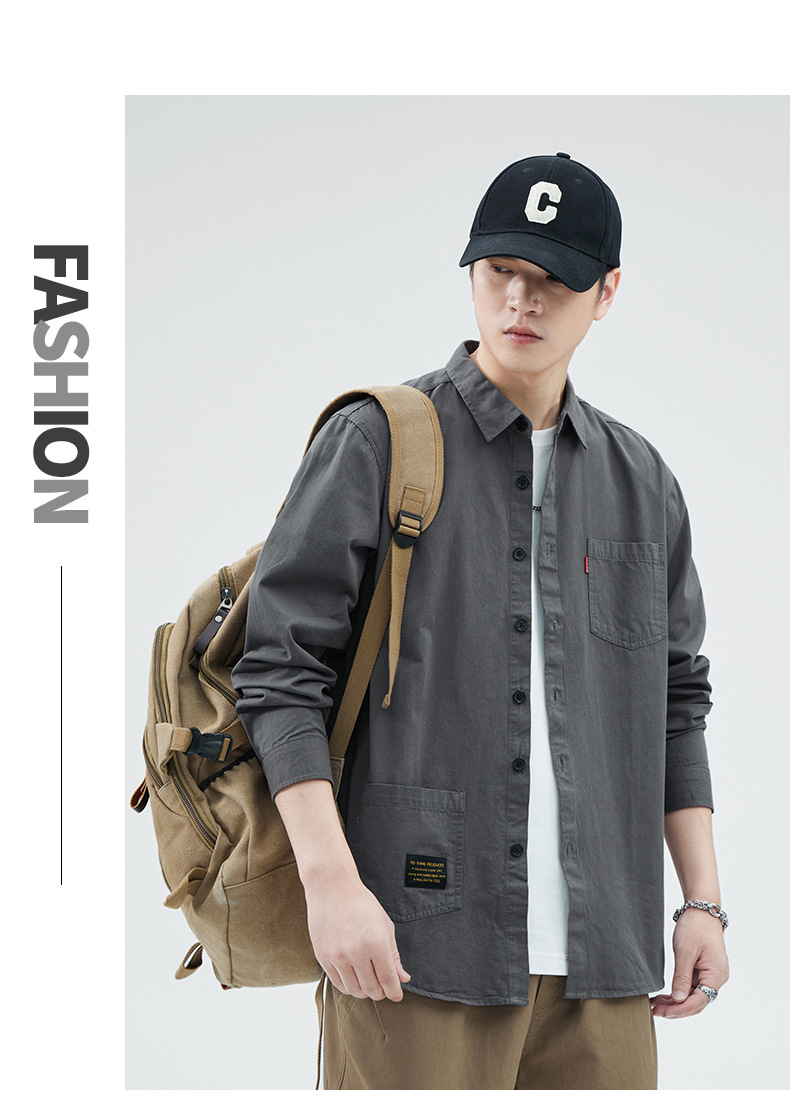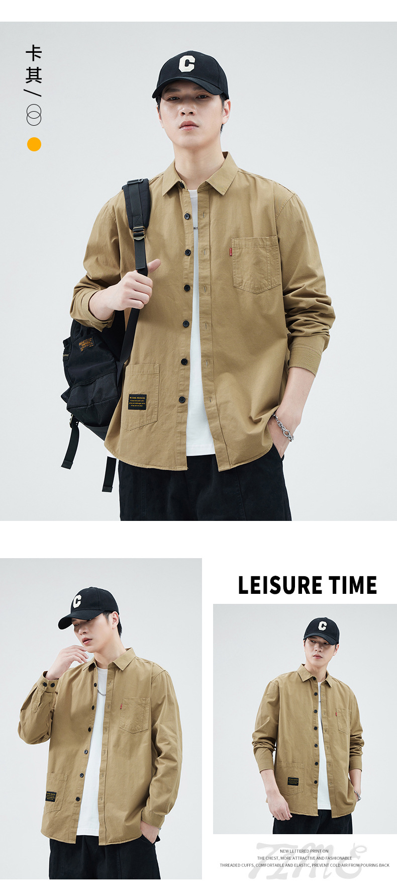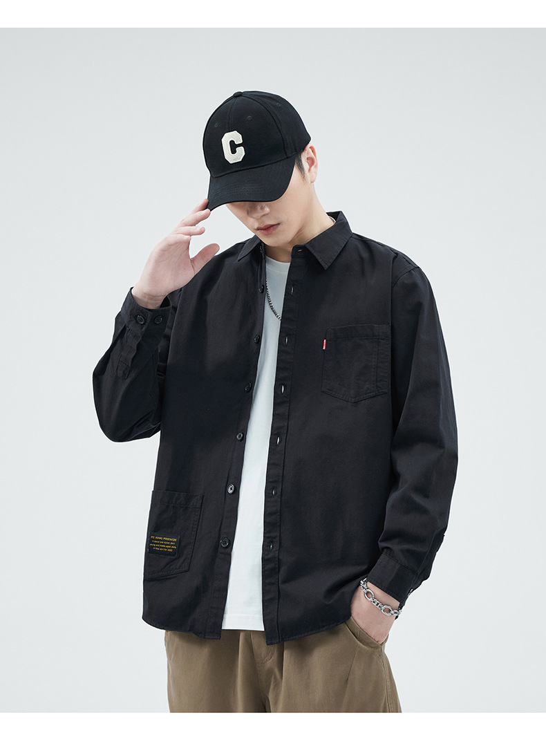 Ropa DE TRABAJO suelta Camisa de algodón camisa de los hombres de alto grado de estilo coreano suelto casual simple bolsillo único