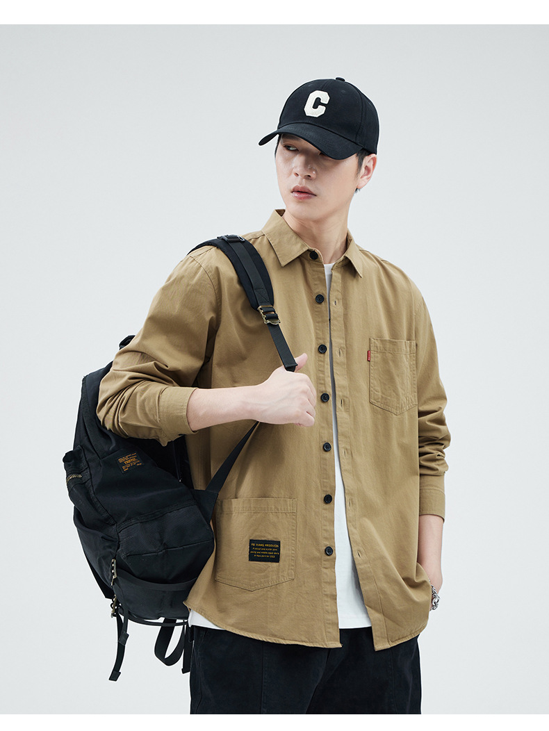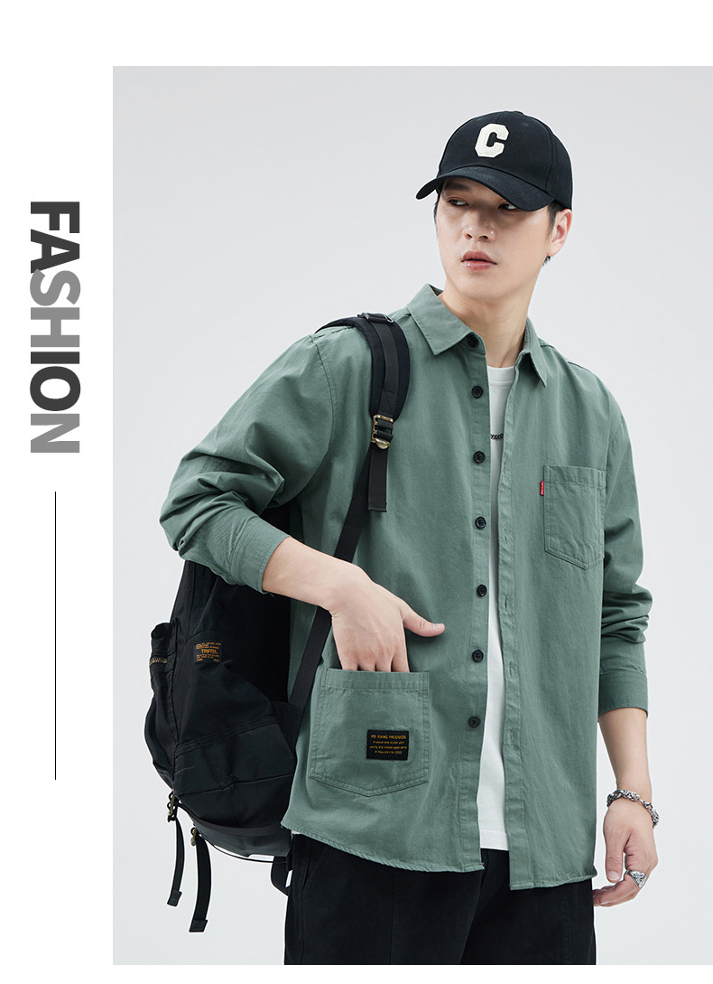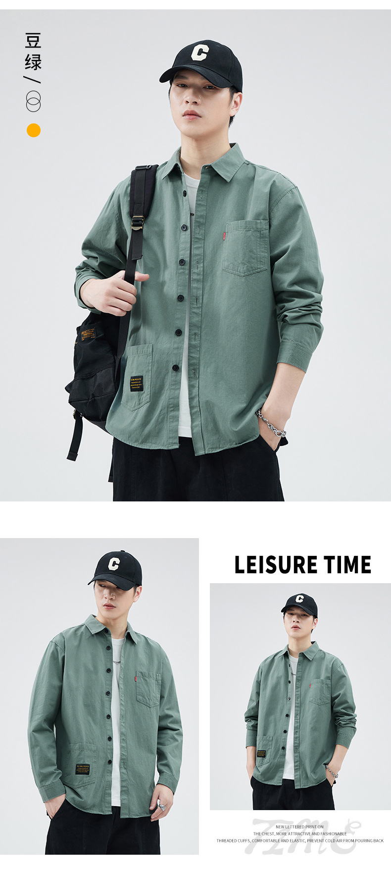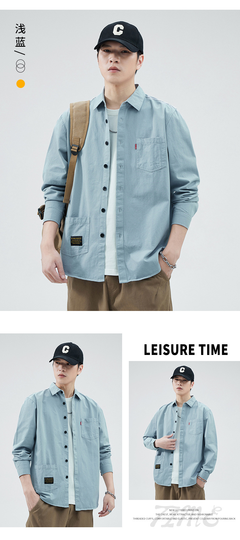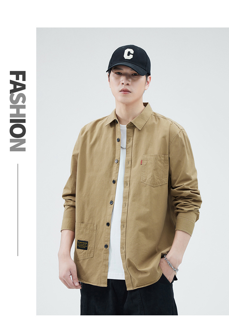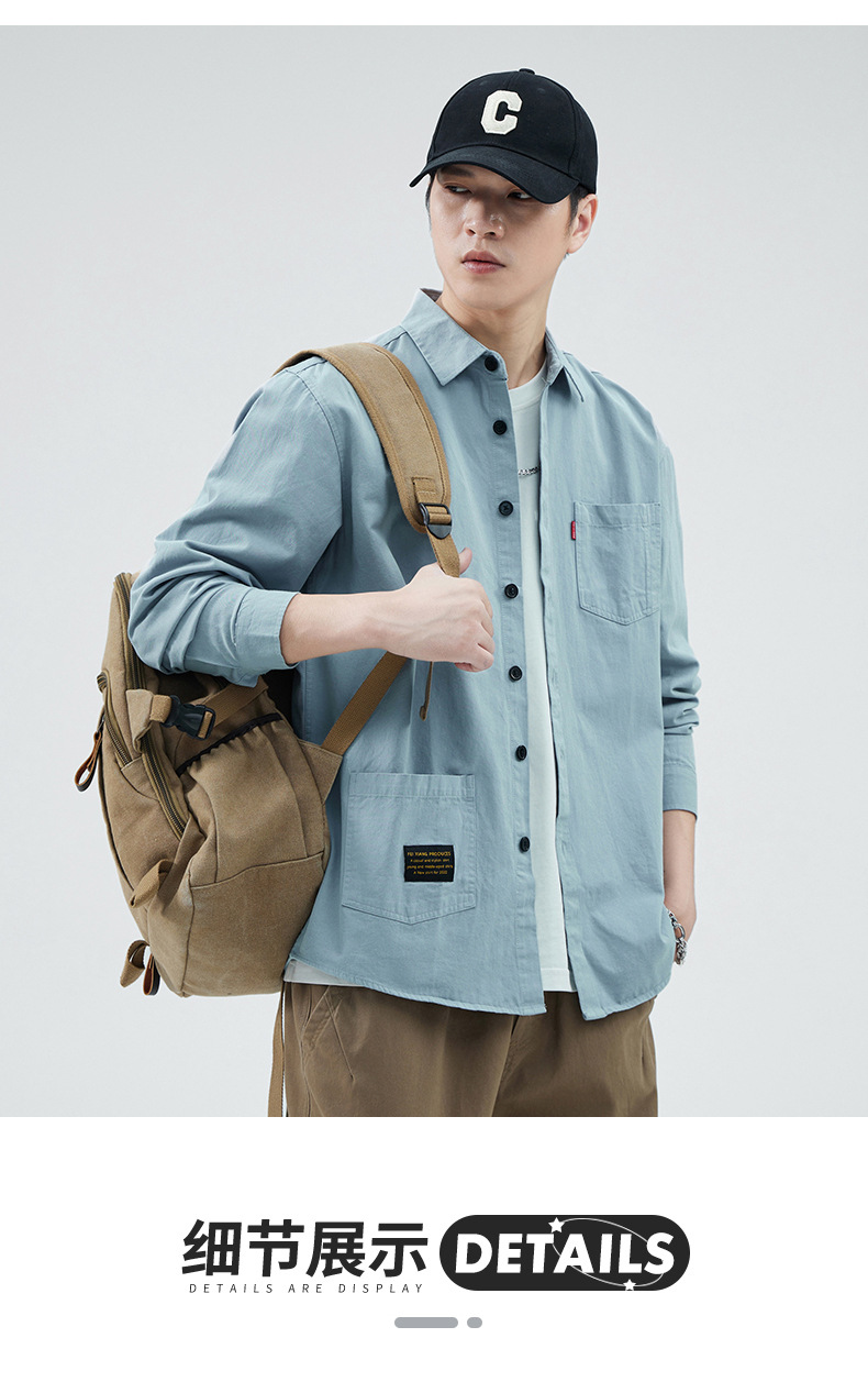 Camisas personalizadas de fábrica para hombres primavera y verano algodón de manga larga tendencia de ropa de estilo americano con solapa de bolsas de moda de ropa de estilo
