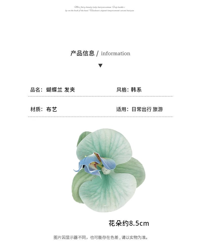 | Color | 2 ¿ Orange Yellow 3D phalaenopsis, 3 ¿ Purple Phalaenopsis Duck mouth clip, 2 ¿ rosa Phalaenopsis Duck mouth clip, 2 ¿ egg clip - medio individual 7,5 cm, 3 ¿ egg clip - grande individual 9 cm, 1 ¿ egg clip - pequeño individual 5,5 cm, 2 ¿ azul, 1 ¿ rojo, 1 ¿ Lilium Blossom clip, 2 ¿ azul Baihe clip, 3 ¿ rosa Lily Blossom clip, 4 ¿ champán clip |