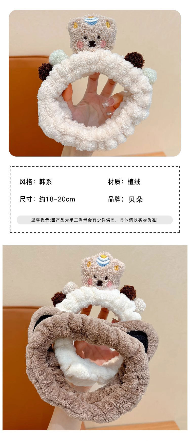| Color | 1 con pelo de oso de pastel rosa, 2 con pelo de oso de pastel marrón, 3 con pelo de oso de pastel beige, 4 con orejas de gato, 5 con orejas de gato blancas, 6 con panda negro, 7 con pelo de oso de fresa claro, 8 con pelo de oso de fresa blanco |