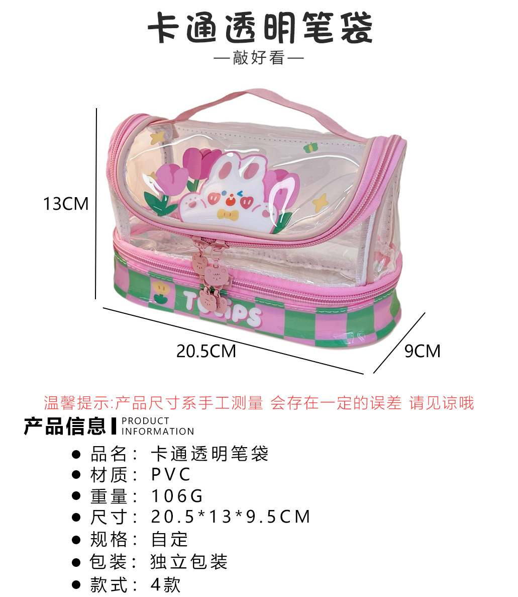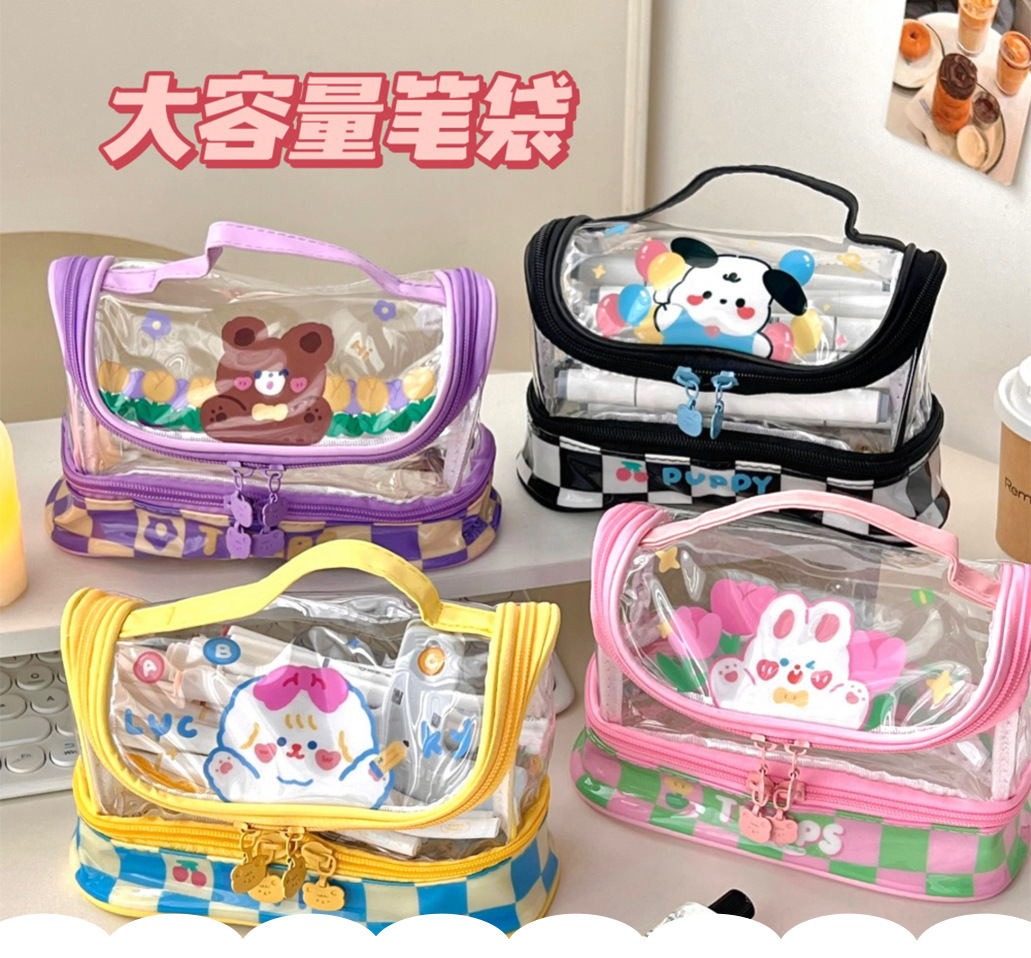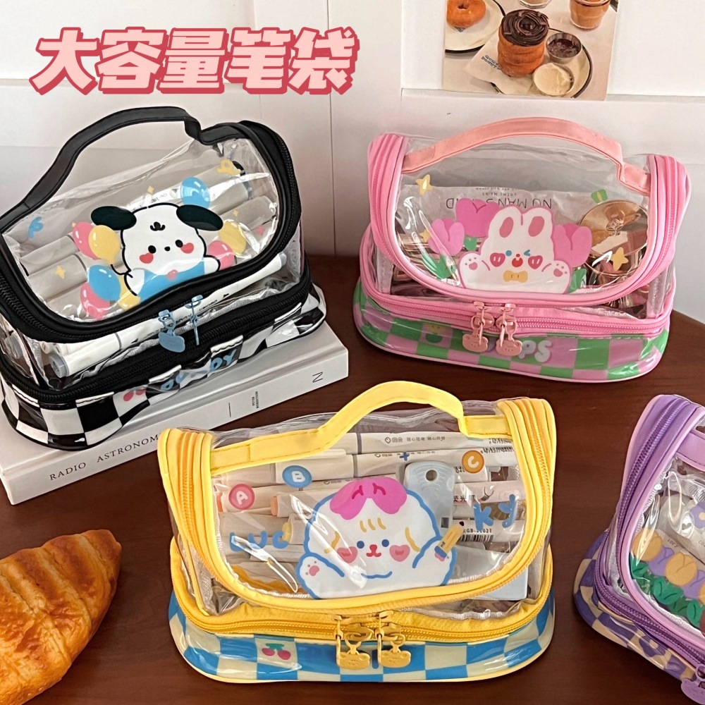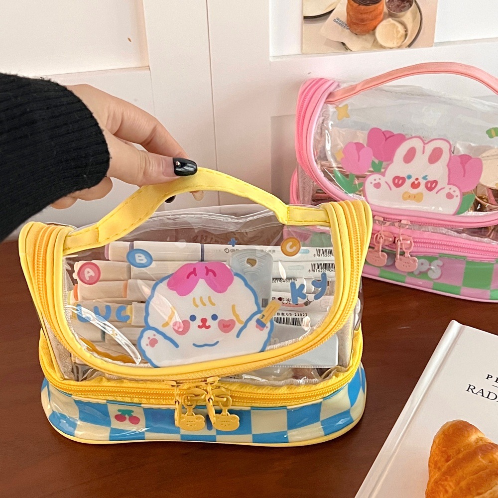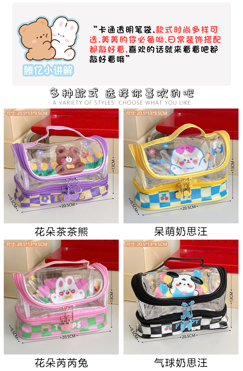 Tengyi original bolsas de papelería transparentes de dibujos animados bolsas de bolsillo de estudiantes de gran capacidad de alto valor de belleza bolsas de almacenamiento de cosméticos para jóvenes
