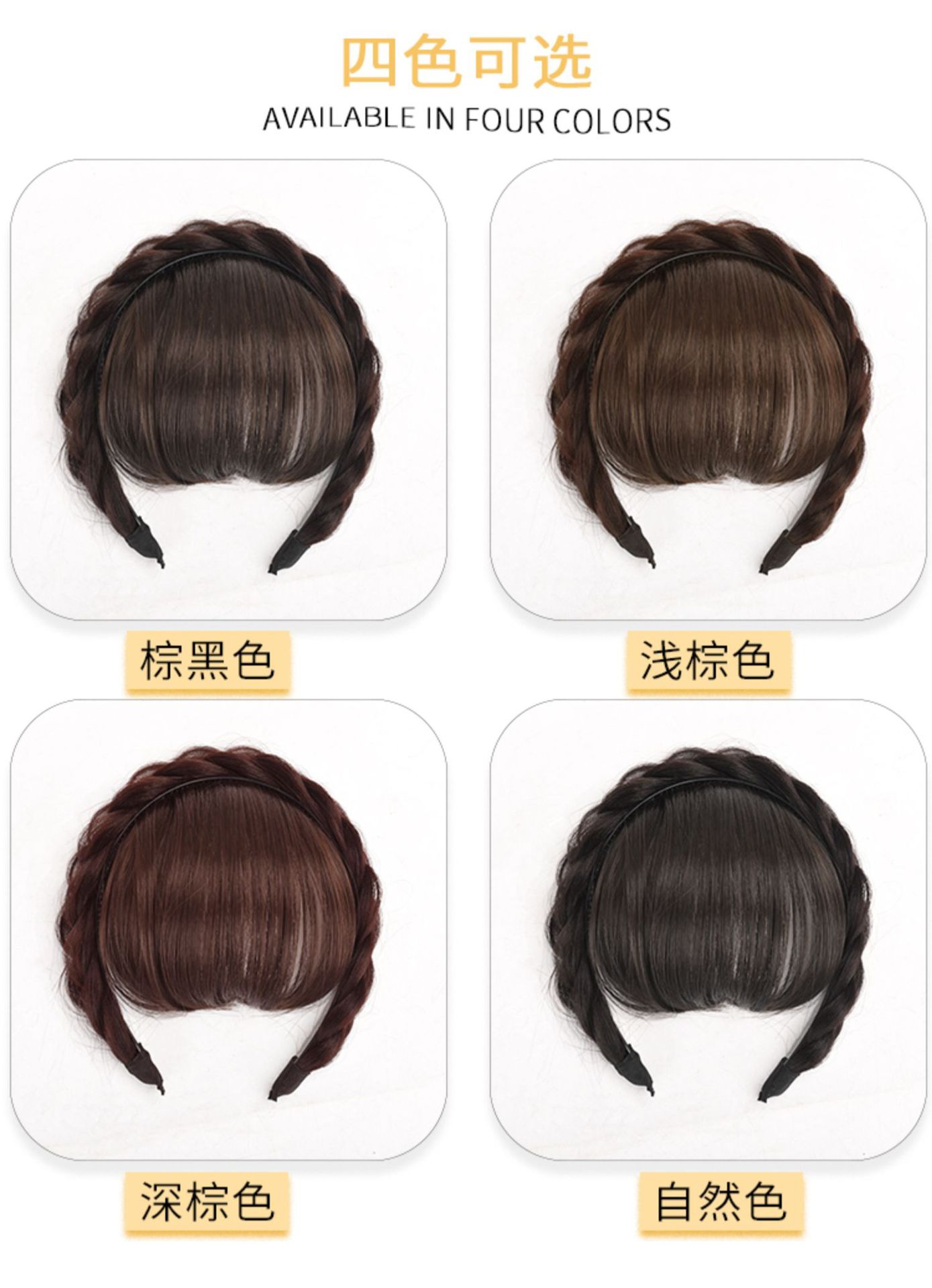 | Colores | 1 # flequillo trenzado [marrón y negro.,2 # flequillo trenzado [negro natural].,3 # flequillo trenzado [marrón claro].,4 # flequillo trenzado [marrón oscuro]. |