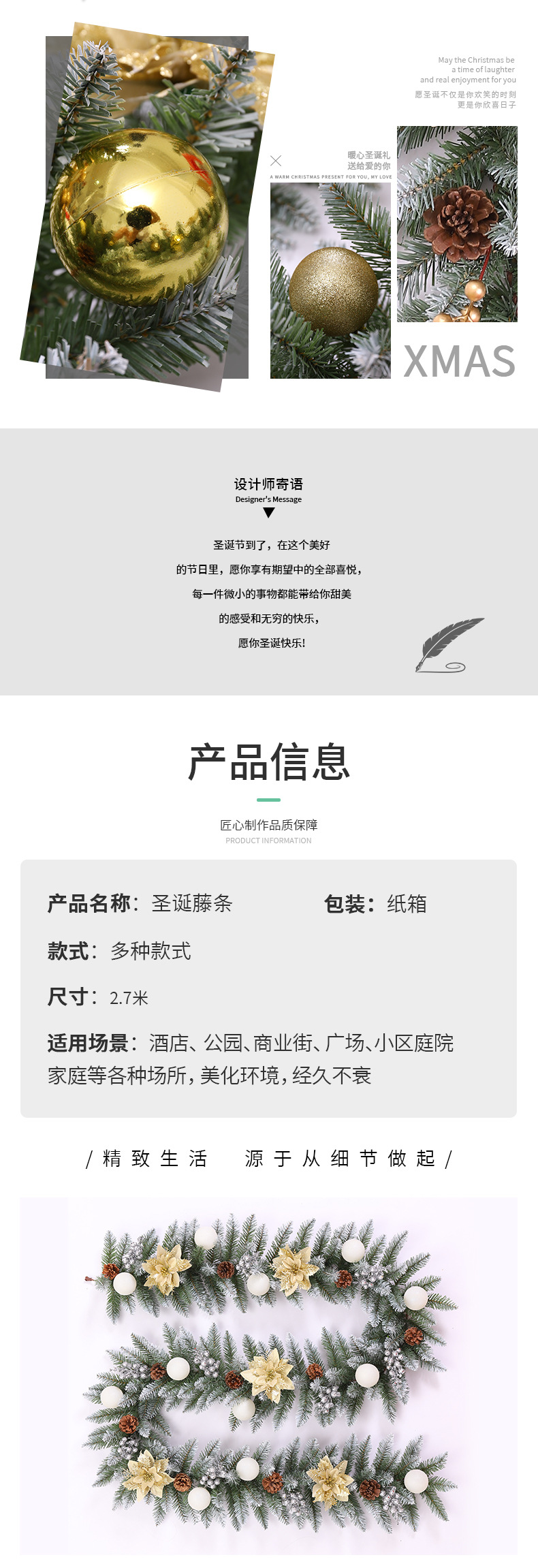 | Color | Ratán blanco de los 2,7 m 200T (flor roja, fruta roja, bola roja, cono del pino),2,7 m 200T ratán con bordes blancos (Flor de Oro, fruta dorada, bola blanca, cono de pino),2,7 m 200T ratán de bordes blancos (Flor de Oro, fruta de oro, bola de oro, cono de pino),Los 2,7 m 200T ratán blanco-afilado (Flor de Oro, fruta de plata, bola blanca, cono del pino) |